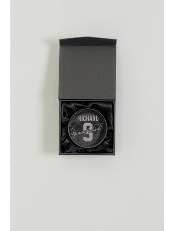 Ce qui rend cette rondelle vraiment spéciale, c'est la réplique de la signature de Nick Suzuki, qui a été soigneusement gravée à l'intérieur du cristal. Cela ajoute une touche personnelle à la pièce et en fait un objet de collection unique.