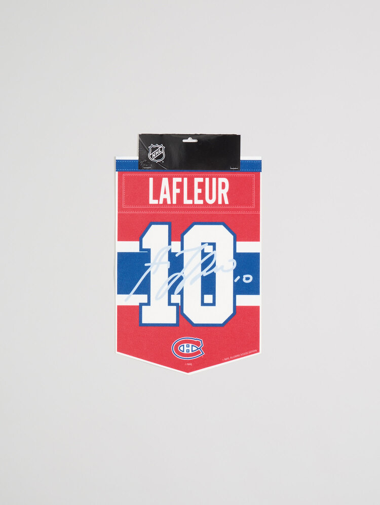 Célébrez l'héritage de l'un des plus grands joueurs des Canadiens avec la bannière miniature avec signature réplique du #10 Guy Lafleur. Cette mini-bannière haut de gamme rend hommage à "Le Démon Blond" et à sa carrière légendaire avec les Canadiens de Montréal. Arborant le #10 iconique de Guy Lafleur et une réplique de sa signature, cette pièce de collection est parfaite pour tout fan voulant honorer la légende du hockey.
