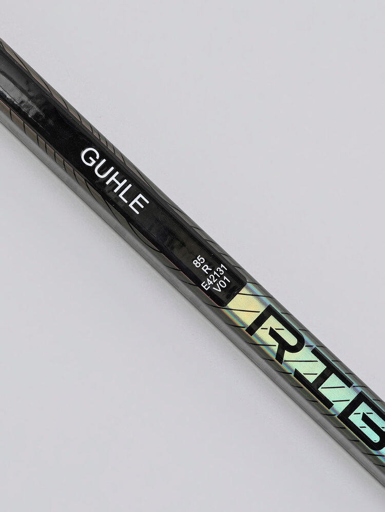 Ceci est un bâton gaucher CCM TRIGGER8 de flex 85 préparé pour Kaiden Guhle.