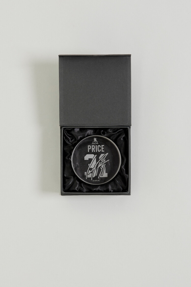 Ce qui rend cette rondelle vraiment spéciale, c'est la réplique de la signature de Carey Price, qui a été soigneusement gravée à l'intérieur du cristal. Cela ajoute une touche personnelle à la pièce et en fait un objet de collection unique.
