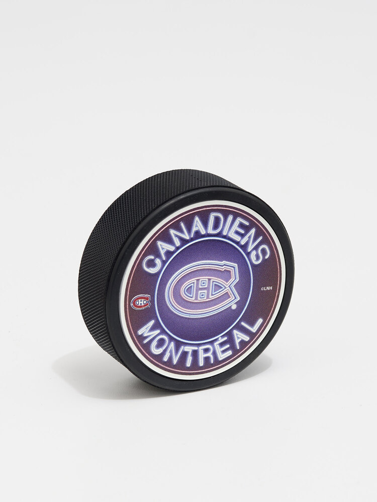 Illuminez votre passion pour le hockey avec la rondelle logo néon des Canadiens de Montréal! Cet objet de collection unique allie un design audacieux à l'esprit d'équipe, parfait pour tout fan des Habs.