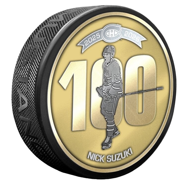 Soulignez un moment marquant de l’histoire des Canadiens de Montréal avec la rondelle médaillon de célébration du 100e point de Nick Suzuki. Cet objet de collection haut de gamme rend hommage au 100e point en carrière de Nick Suzuki dans la LNH, mettant en valeur le leadership et la constance du capitaine du Tricolore.
