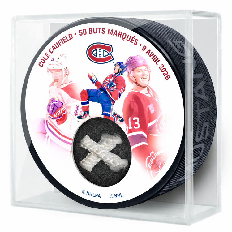 Possédez un véritable fragment d’histoire des Canadiens de Montréal avec la rondelle du 50e but de Cole Caufield avec morceau de filet, un objet de collection exceptionnel soulignant un jalon marquant de sa carrière. Cette rondelle commémorative célèbre le 50e but en carrière de Cole Caufield et comprend un véritable morceau de filet, offrant un lien unique et authentique avec ce moment sur la glace.
