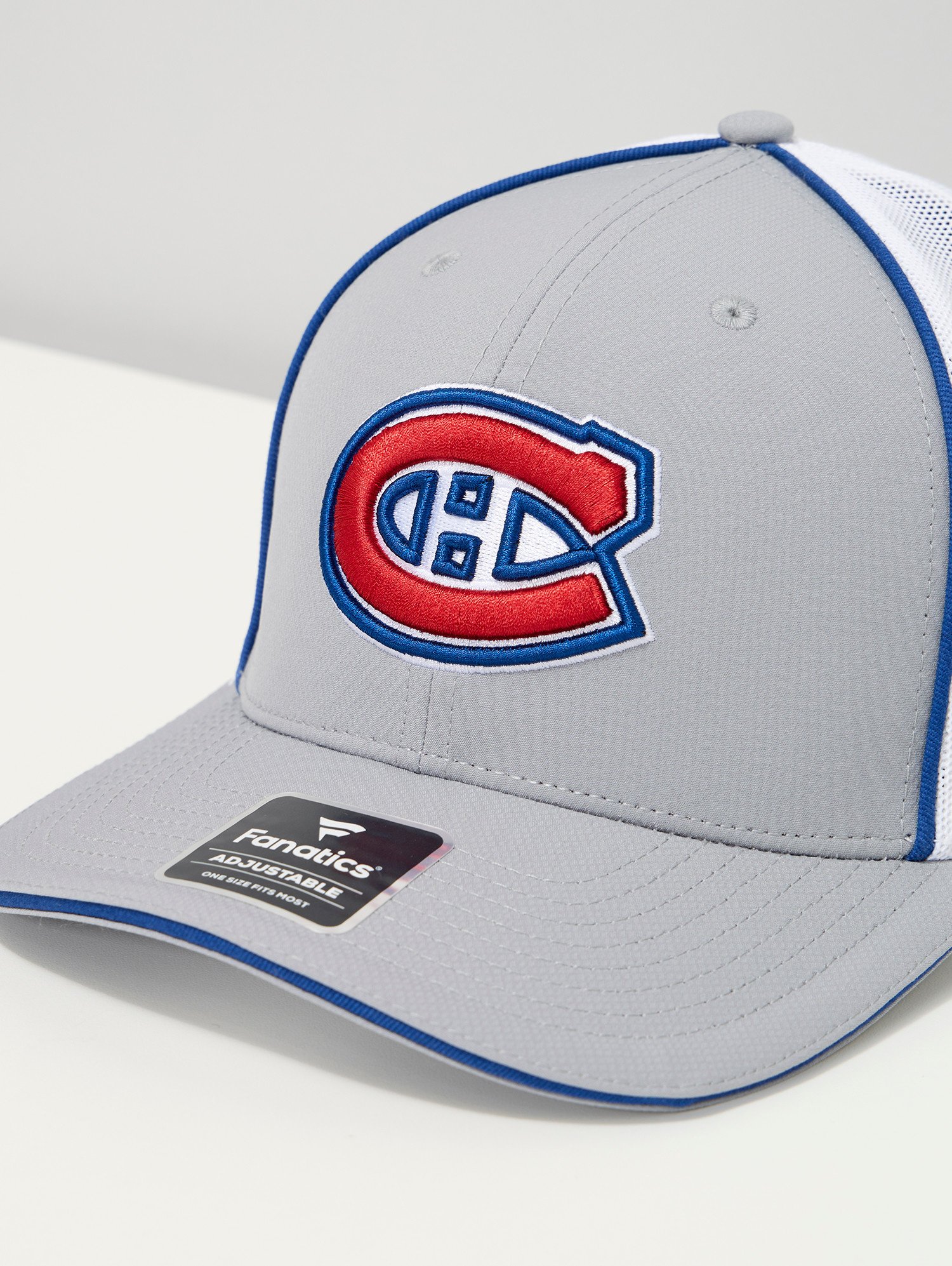 Affiche fièrement tes couleurs avec la casquette camionneur à contour bleu des Canadiens de Montréal signée Fanatics. Avec son panneau avant gris épuré et son logo brodé en rouge et bleu bien en évidence, cette casquette est un incontournable pour tout fan qui veut représenter son équipe avec style. Le dos en maille blanche respirante et la fermeture à pression ajustable assurent un confort optimal toute la journée.