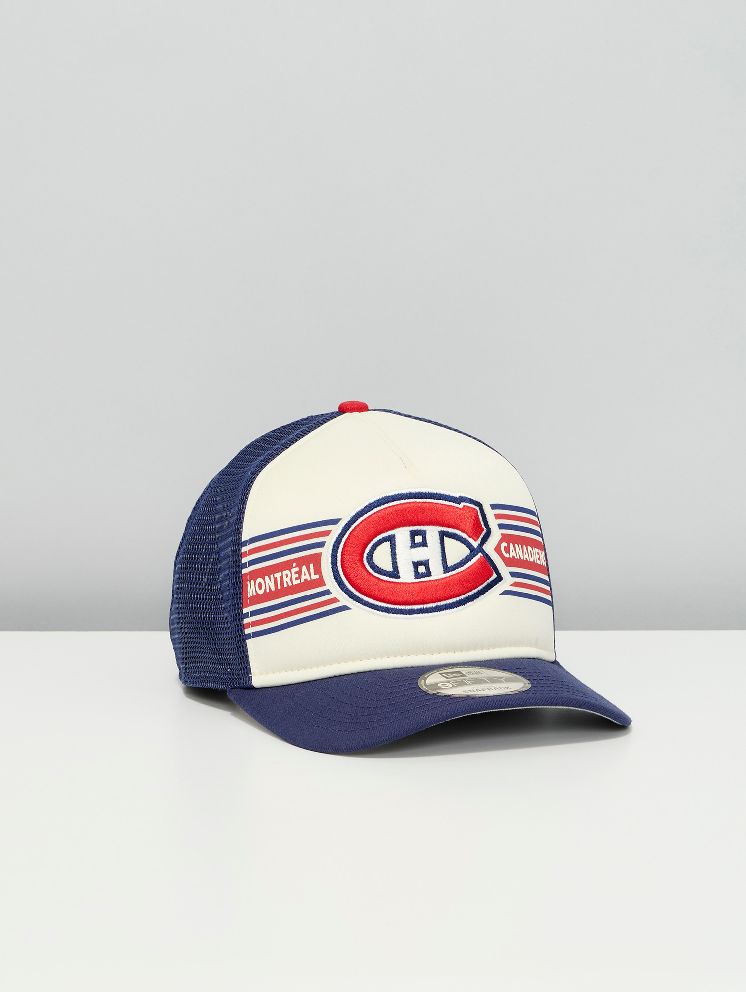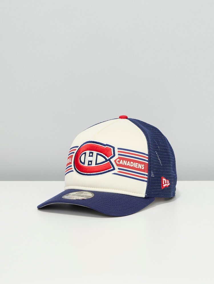 Affichez votre passion pour le CH avec la casquette trucker 9FIFTY en mousse bannière des Canadiens de Montréal signée New Era. Dotée d’un panneau avant audacieux avec le logo classique des Canadiens et des bandes décoratives, cette casquette allie style rétro et confort moderne. Le devant en mousse et l’arrière en maille assurent respirabilité et confort, tandis que la fermeture snapback ajustable garantit un ajustement parfait.