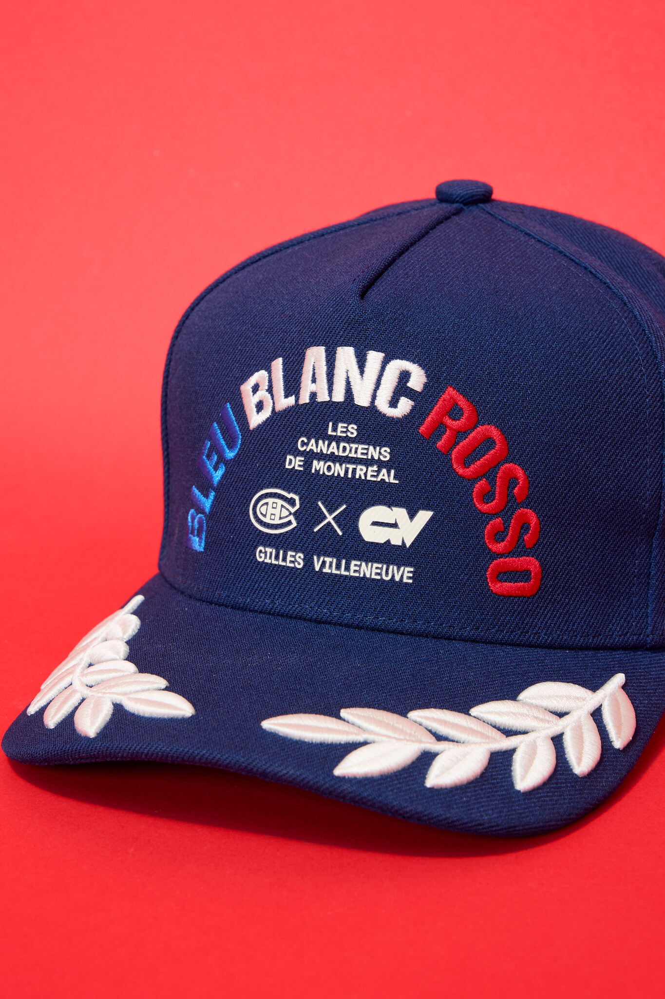Affiche ta fierté montréalaise avec la casquette CH x Gilles Villeneuve – Bleu Blanc Rosso. Cette pièce exclusive rend hommage à l’esprit de course légendaire de Gilles Villeneuve et à l’héritage du Club de hockey Canadien.