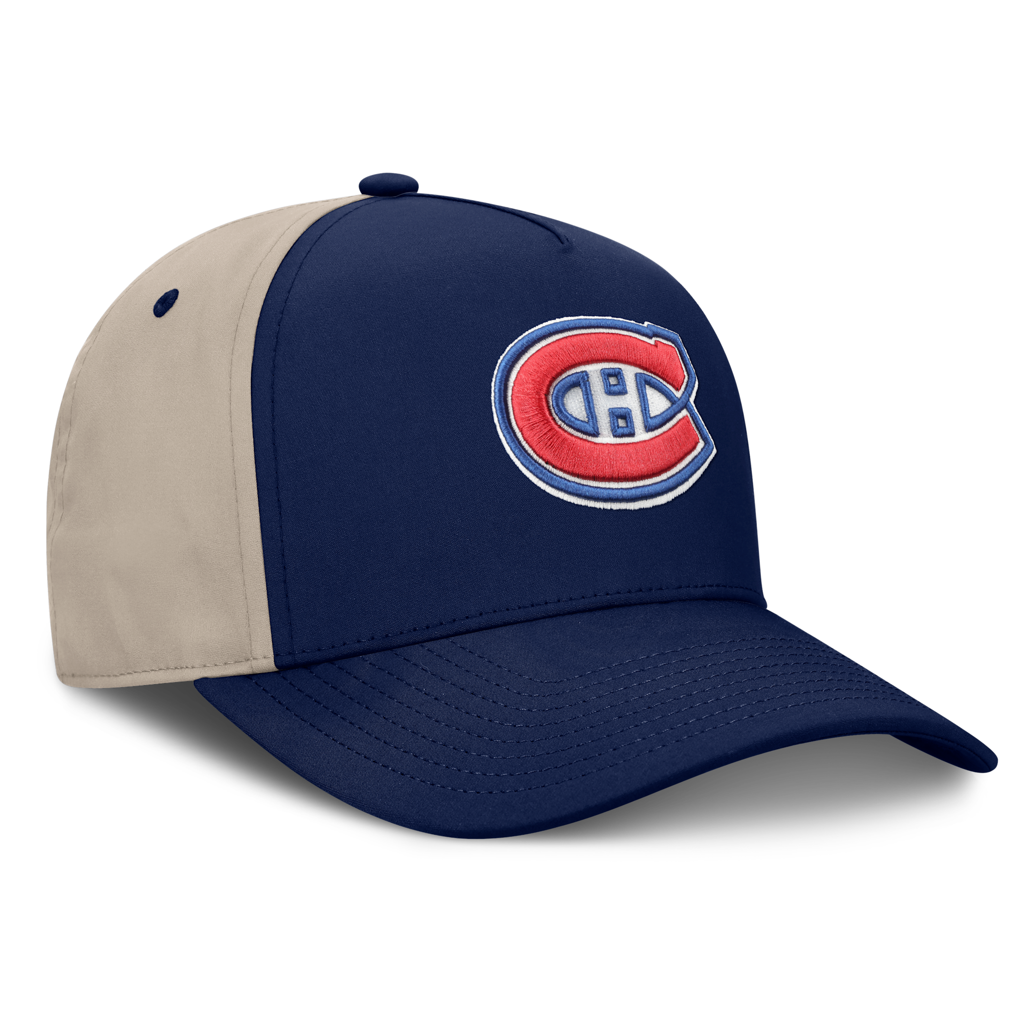 Vibrez au rythme des séries éliminatoires avec la casquette A‑Frame des séries 2026 des Canadiens de Montréal, un incontournable pour les partisans du Tricolore. Cette casquette structurée présente un design bicolore moderne avec une couronne contrastante et une visière assortie, mettant en valeur le logo emblématique des Canadiens de Montréal brodé à l’avant.