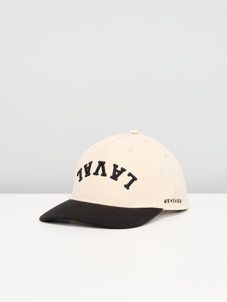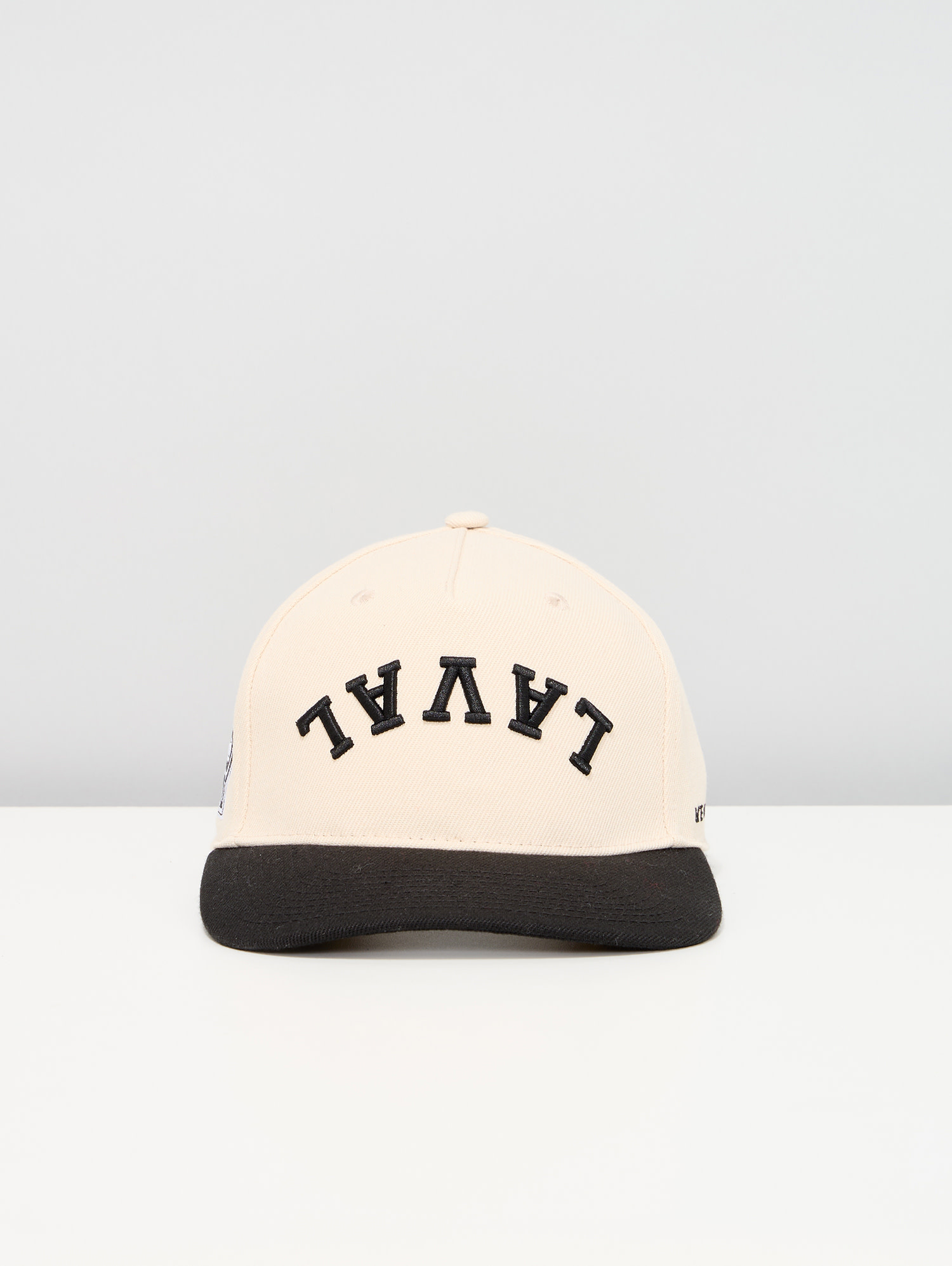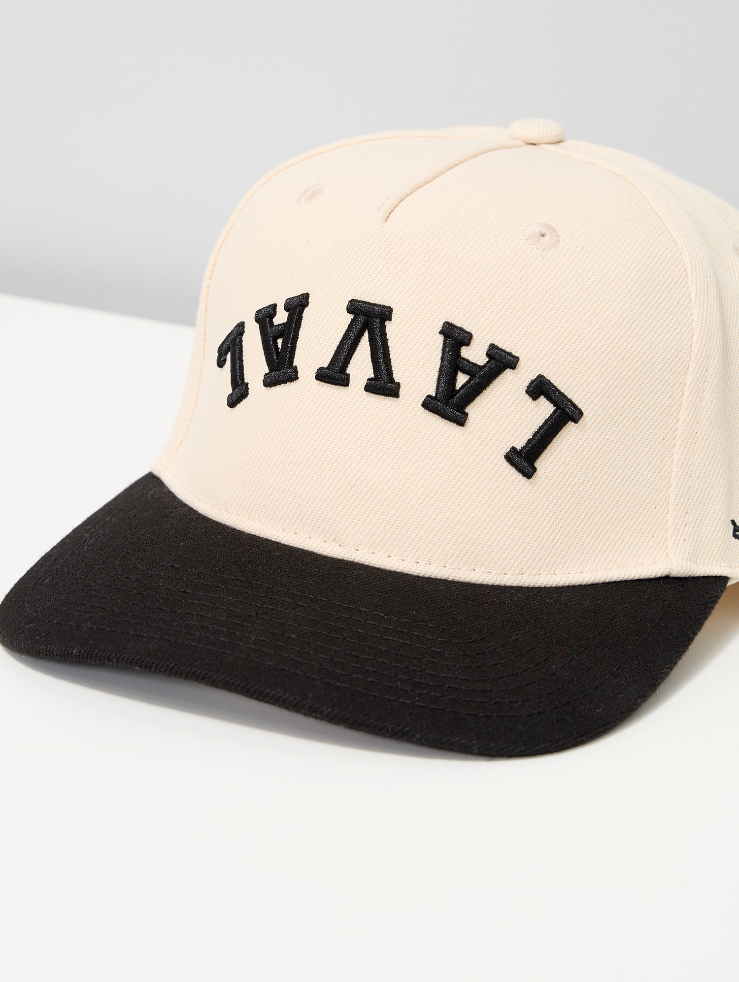 Affirmez votre style avec la Casquette Snapback Laval Reversed Noir sur Beige, un accessoire audacieux qui revisite le look classique des partisans de Laval. Arborant une couronne beige élégante et une visière noire contrastante, cette casquette se distingue grâce à son inscription “LAVAL” inversée, offrant une touche moderne et originale.
