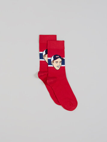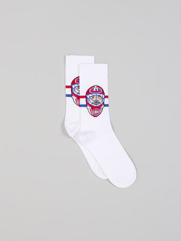 Porte les couleurs de ton équipe préférée de la tête aux pieds grâce à ces bas Cole Caufield!