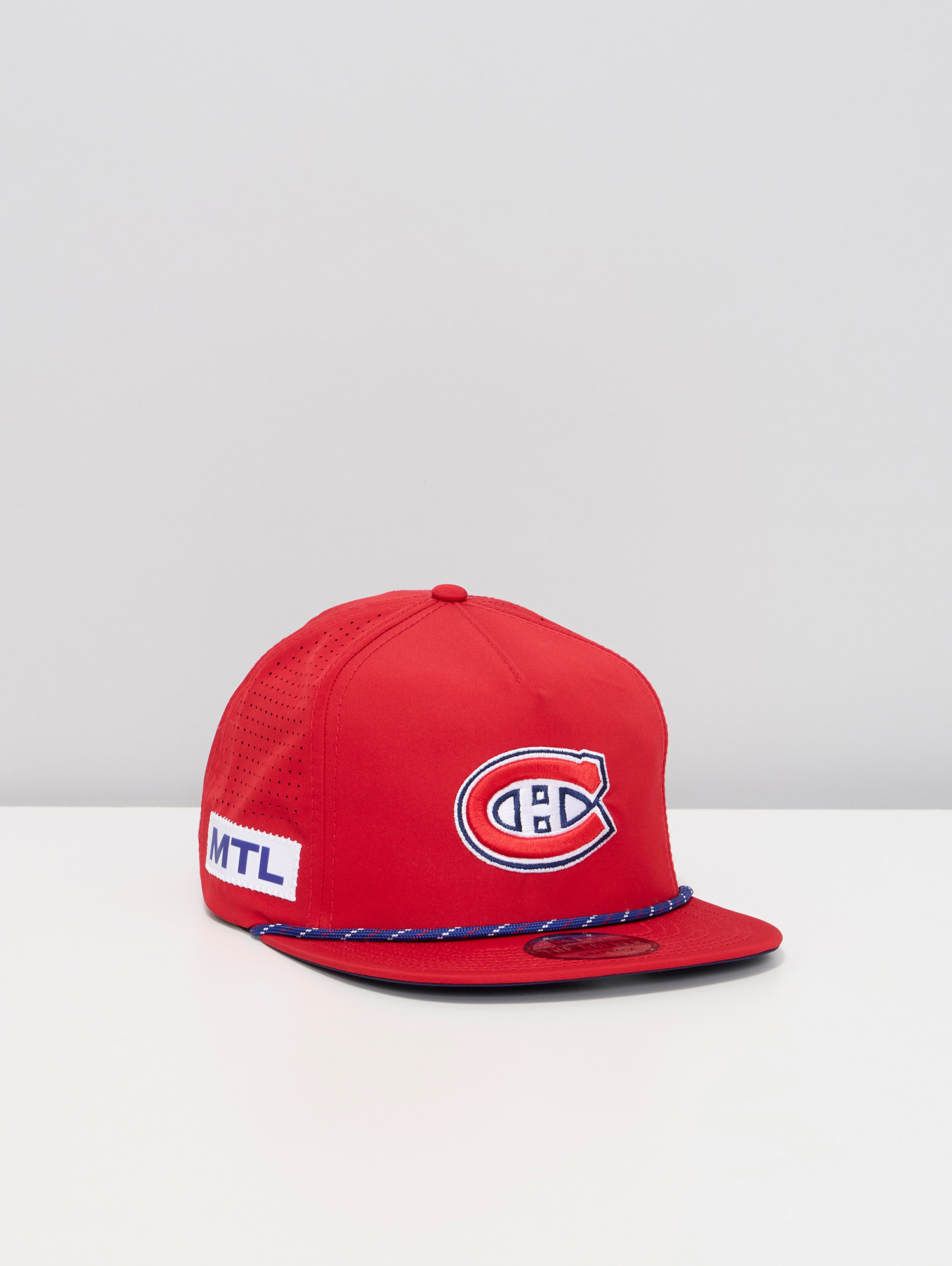 Affichez votre style et restez au frais avec la casquette Golfer Optic White Performance Rope des Canadiens de Montréal signée New Era. Cette casquette haut de gamme présente le logo des Habs brodé sur les panneaux avant et est conçue avec un tissu respirant pour un confort optimal toute la journée. Les détails incluent un écusson de la ville sur le côté droit, une visière plate avec cordon décoratif, une fermeture ajustable à cordon à l’arrière et un dessous de visière bleu marine pour une finition élégante.
