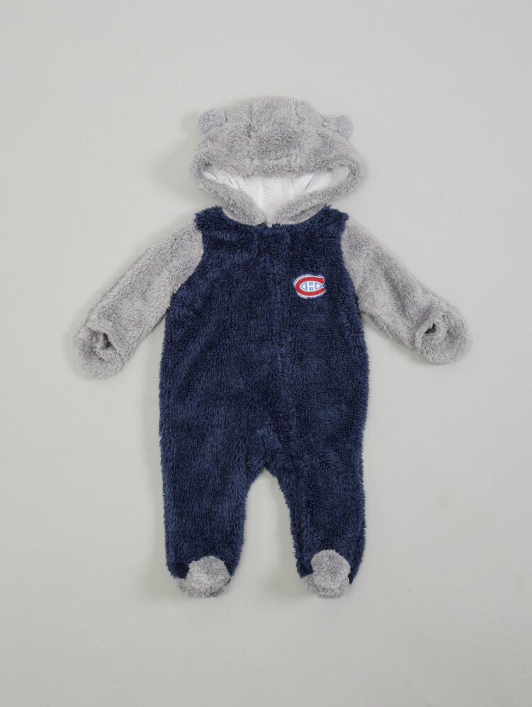Cette adorable combinaison Game Nap des Canadiens de Montréal pour bébés est parfaite pour votre petit partisan. Il présente un corps rouge avec des manches grises, de jolies oreilles d'ourson sur la capuche, et un logo directement brodé sur la poitrine. Son coton interlock 100 % est doux et confortable, et la fermeture à glissière permet de l'enfiler et de l'enlever facilement. Les pieds et les mains couverts gardent votre bébé bien au chaud, que vous encouragiez l'équipe à l'aréna ou que vous la regardiez à la maison.