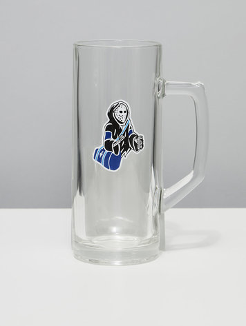 Voici la tasse à café de La Poche Bleue avec le visuel bouchon de bière et bâtons croisés imprimé dessus. Cet article est issu de la collaboration exclusive entre Tricolore Sports et La Poche Bleue, le podcast créé et animé par les anciens Canadiens Maxim Lapierre et Guillaume Latendresse.