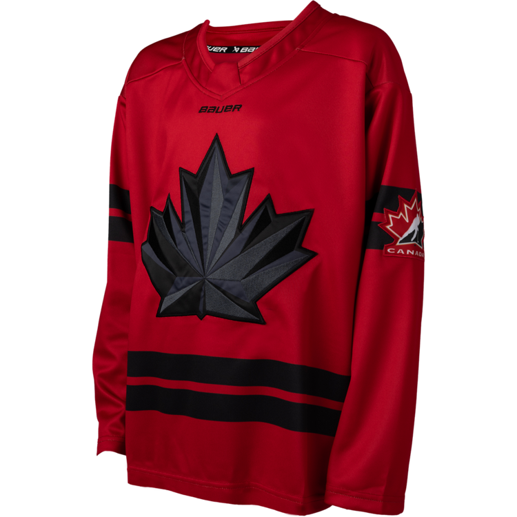 Avec ses détails de rayures entièrement sublimés, ce chandail présente un look moderne tout en mettant en valeur la fierté canadienne. Le logo emblématique à l’avant arbore une feuille d’érable audacieuse, accompagnée de l’écusson Canada sur la manche gauche pour une touche authentique. Les finitions comprennent la broderie BAUER au centre de la poitrine et l’icône BAUER brodée à l’arrière, garantissant une qualité supérieure.