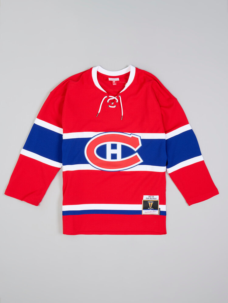 Plongez dans l’histoire du hockey avec ce chandail réplique vintage 1957–58 de Jean Béliveau des Canadiens de Montréal, un hommage fidèle à l’un des capitaines les plus emblématiques de la LNH. Ce chandail rouge classique, orné de bandes bleues et blanches audacieuses et d’un col lacé traditionnel, reproduit le design porté par Béliveau lors de l’une des périodes les plus glorieuses du club — marquée par la domination, l’élégance et de multiples conquêtes de la Coupe Stanley. Pensé pour les amateurs de style intemporel et de leadership légendaire, ce chandail incarne la prestance de Béliveau sur la glace comme en dehors. Un incontournable pour les collectionneurs et les fidèles du CH.