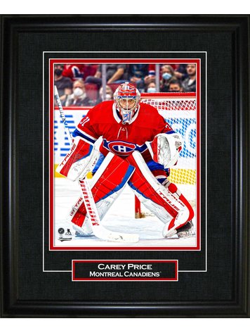 Cette pièce 8x10 encadrée représente la vedette et le capitaine des Canadiens de Montréal, Nick Suzuki et comporte une épinglette du logo des Canadiens au sommet de la pièce.