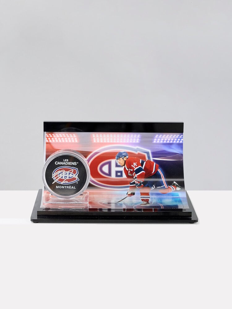 La rondelle Nick Suzuki encadrée est un objet de collection mettant en valeur la de Suzuki dans un cadre élégant. Présenté avec soin dans un encadrement de haute qualité, il constitue un ajout chic et sophistiqué à toute collection de souvenirs. Célébrez l'excitation du hockey avec cette élégante vitrine de la contribution de Suzuki au sport. Parfait pour l'affichage à la maison, au bureau ou dans une salle dédiée au sport.