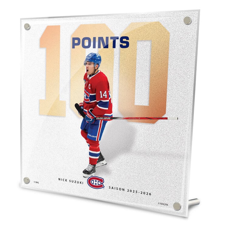 Célébrez un accomplissement majeur dans l’histoire récente des Canadiens de Montréal avec la plaque de célébration du 100e point de Nick Suzuki. Cet article commémoratif met en lumière le 100e point en carrière de Nick Suzuki dans la LNH, soulignant le talent, la constance et le leadership du capitaine du Tricolore.