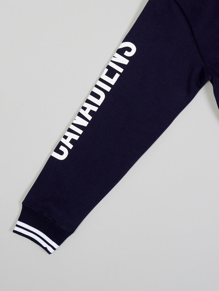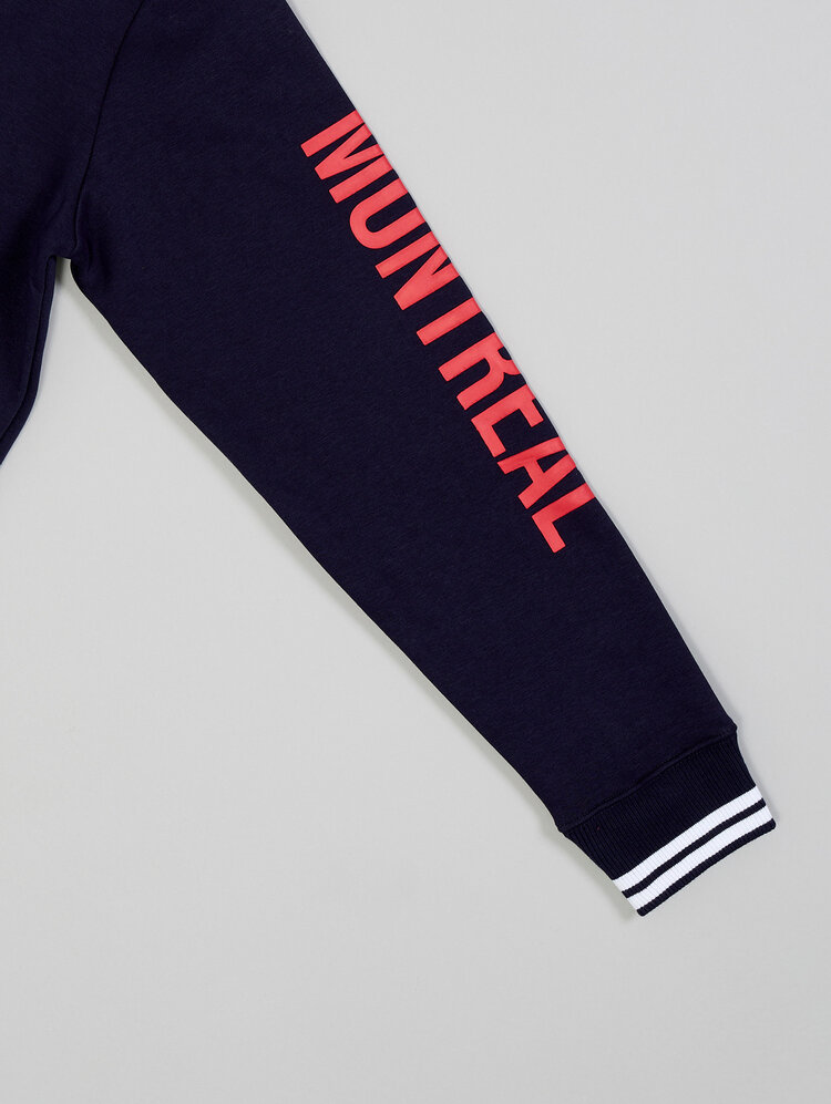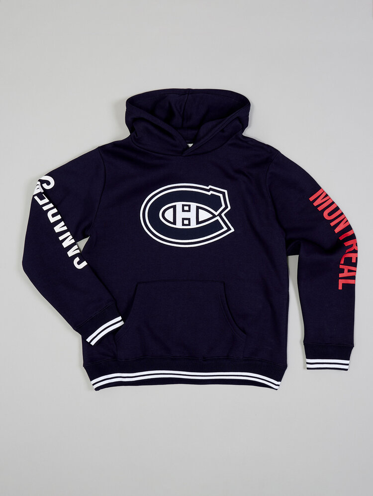 Reste au chaud avec style tout en affichant ta fierté pour les Canadiens grâce au ouaté à capuchon bleu marine Express 2.0. Ce modèle populaire arbore un écusson brodé à l’avant, mettant en valeur le logo des Canadiens. Conçu pour le confort et la praticité, il comprend une capuche doublée et une poche kangourou idéale pour garder les mains au chaud ou ranger de petits objets. Les côtes teintes à la laine assurent un ajustement parfait, tandis que les imprimés sur les manches ajoutent une touche dynamique et sportive — l’option idéale pour tout jeune partisan qui veut représenter le CH avec style au quotidien.