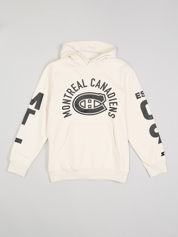 Affichez votre passion pour le CH avec élégance grâce au ouaté classique blanc cassé des Canadiens de Montréal. Son design épuré est rehaussé par un logo emblématique à la poitrine et des graphismes audacieux sur les manches, pour un look moderne et polyvalent.