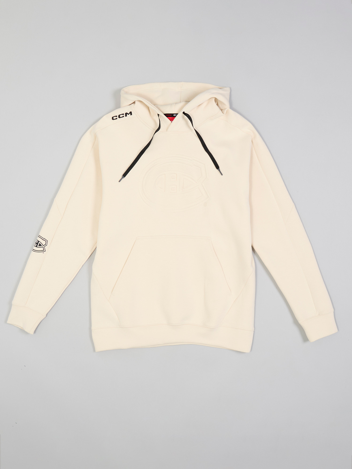 Rehaussez votre tenue de partisan avec le ouaté à capuchon beige en relief des Canadiens de Montréal par CCM—un parfait mélange de style discret et de confort quotidien. Ce chandail unisexe, de couleur beige craie, arbore un logo des Canadiens de Montréal en relief sur le devant, pour un look raffiné et subtil. La capuche avec cordon de serrage offre une couverture ajustable, tandis que les poignets et l’ourlet côtelés assurent un ajustement confortable. Un écusson brodé sur la manche ajoute une touche haut de gamme à ce vêtement de qualité, idéal pour tout amateur des Canadiens.