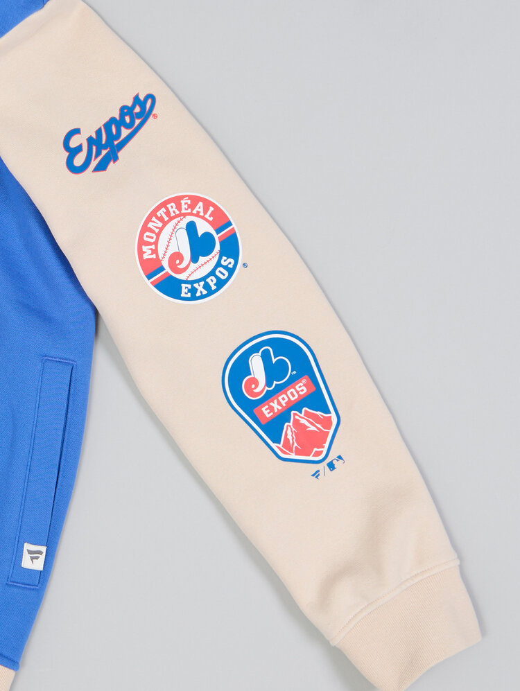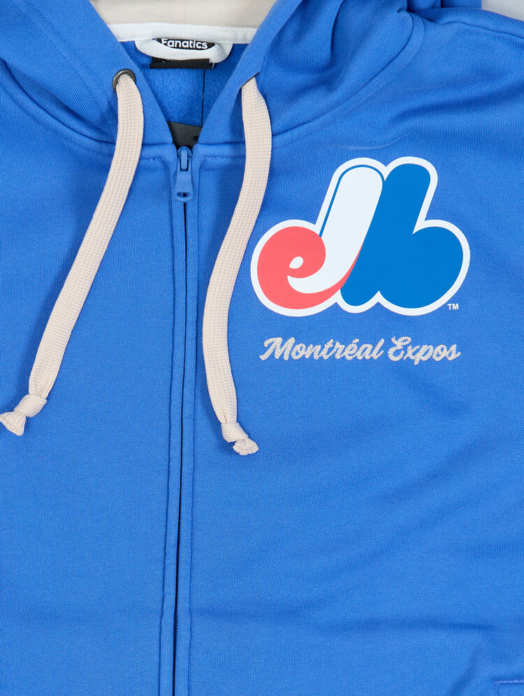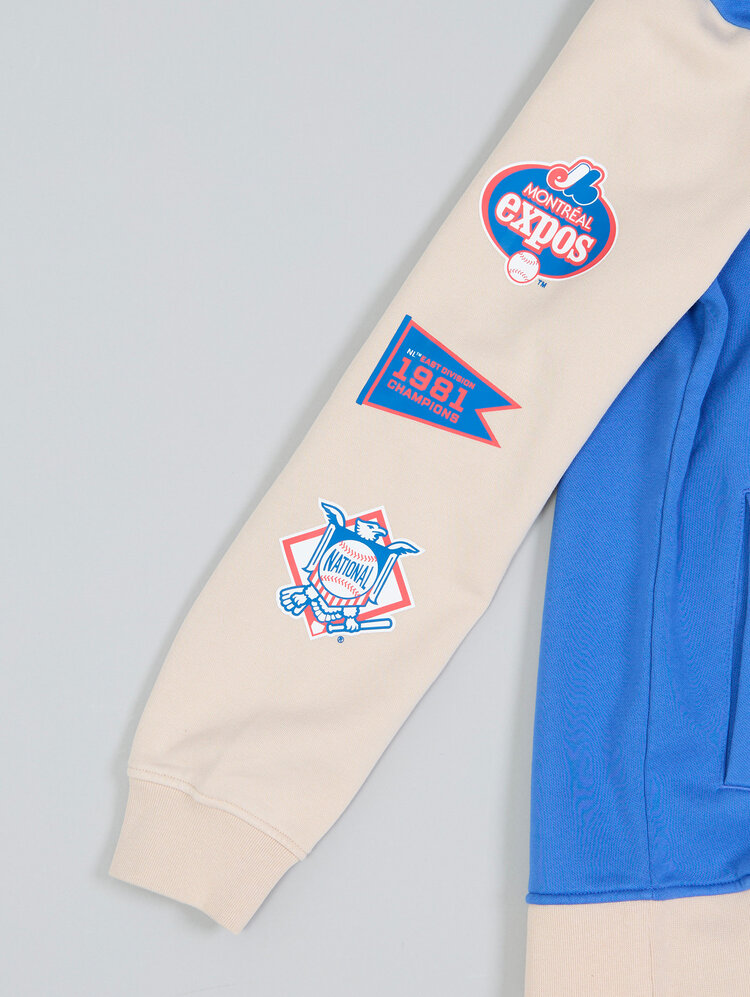 Fabriqué à partir d’un tissu doux et de haute qualité, cette veste assure chaleur et durabilité, que ce soit au stade ou lors de vos sorties. Le logo des Expos de Montréal est fièrement affiché sur la poitrine, tandis que les manches sont ornées de plusieurs écussons imprimés des Expos, rendant hommage à la riche histoire de l’équipe. Avec sa capuche ajustable à cordon et ses poignets et ourlets côtelés, elle offre un ajustement confortable et sûr.