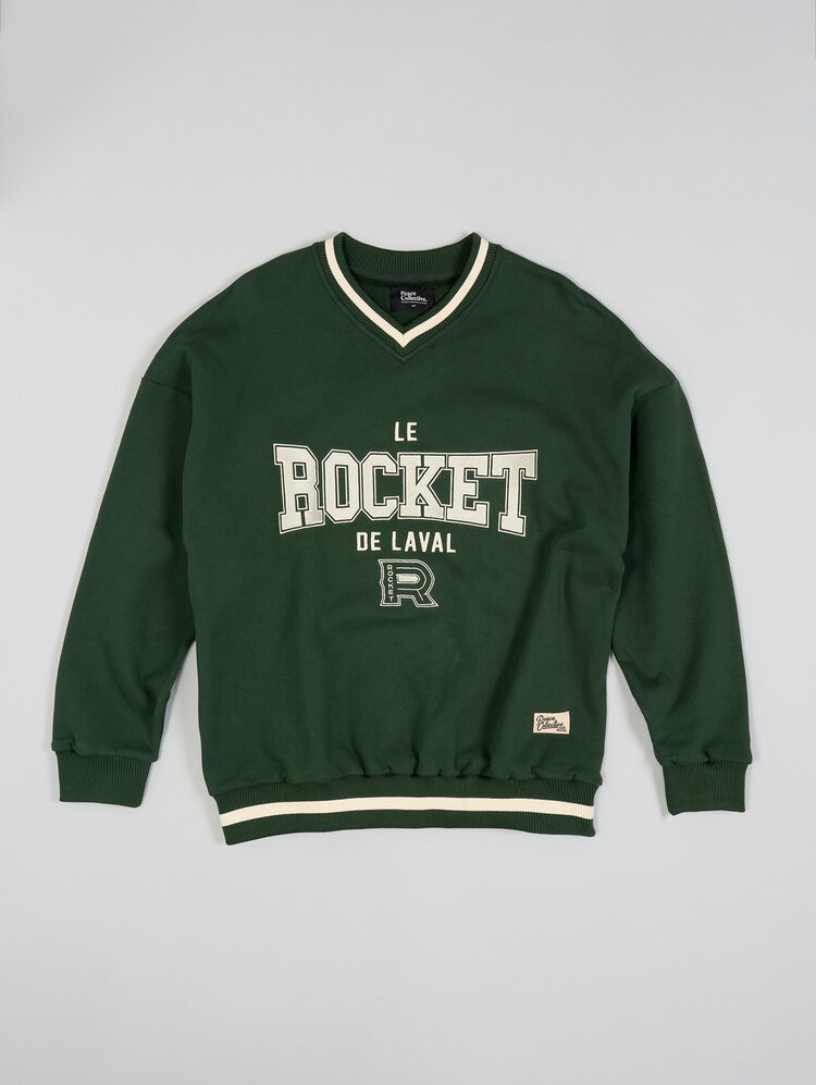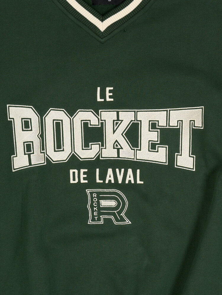 Affichez votre passion pour le hockey avec le chandail vintage à col en V vert du du Rocket de Laval. Ce modèle rétro arbore fièrement l’inscription “du Rocket de Laval” et le logo emblématique de l’équipe sur la poitrine. Sa couleur verte originale apporte une touche unique à votre tenue de partisan, tandis que le tricot lourd et les bordures côtelées assurent chaleur et confort. Sous licence officielle de la LAH, ce chandail est parfait pour les amateurs de style vintage et les fans dU Rocket.