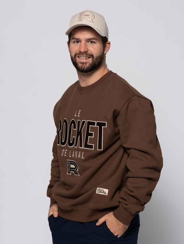 Affichez votre passion pour le Rocket de Laval avec ce ouaté à col rond brodé brun signé Peace Collective. Ce modèle haut de gamme arbore fièrement l’inscription “Rocket de Laval” brodée en blanc et noir sur la poitrine, accompagnée du logo officiel de l’équipe pour un look épuré et raffiné. Conçu avec un tissu lourd et des poignets et ourlets côtelés, il offre confort et tenue. Une étiquette discrète Peace Collective au bas complète le design. Idéal pour les jours de match, les tenues urbaines ou les superpositions confortables.