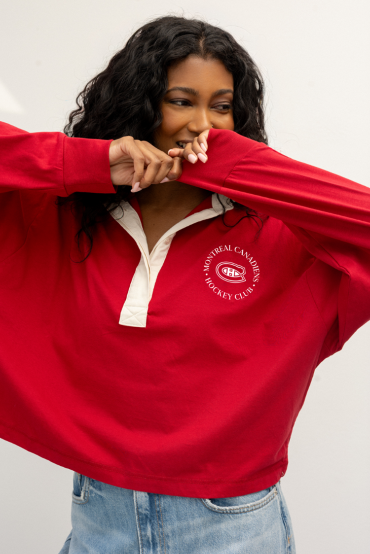 Un chandail de rugby de poids moyen qui allie le style sportif classique à une coupe moderne. Col structuré, détails intemporels et coton respirant. Taille fidèle. Légèrement écourté.