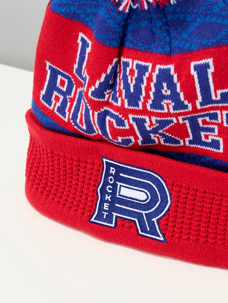 Garde ton jeune partisan bien au chaud avec la tuque tricotée classique du Rocket avec pompon spécialement conçue pour les enfants. Offrant le même confort et style que la version adulte, cette tuque arbore fièrement l’inscription Laval Rocket à l’avant et un revers plié avec un logo brodé du "R" du Rocket pour une touche officielle. Son design aux couleurs emblématiques de l’équipe, son motif tricoté détaillé et son pompon tricolore en font l’accessoire parfait pour les petits fans. Idéale pour affronter l’hiver avec style, que ce soit pour jouer dehors, assister à un match ou simplement montrer leur amour pour le Rocket!