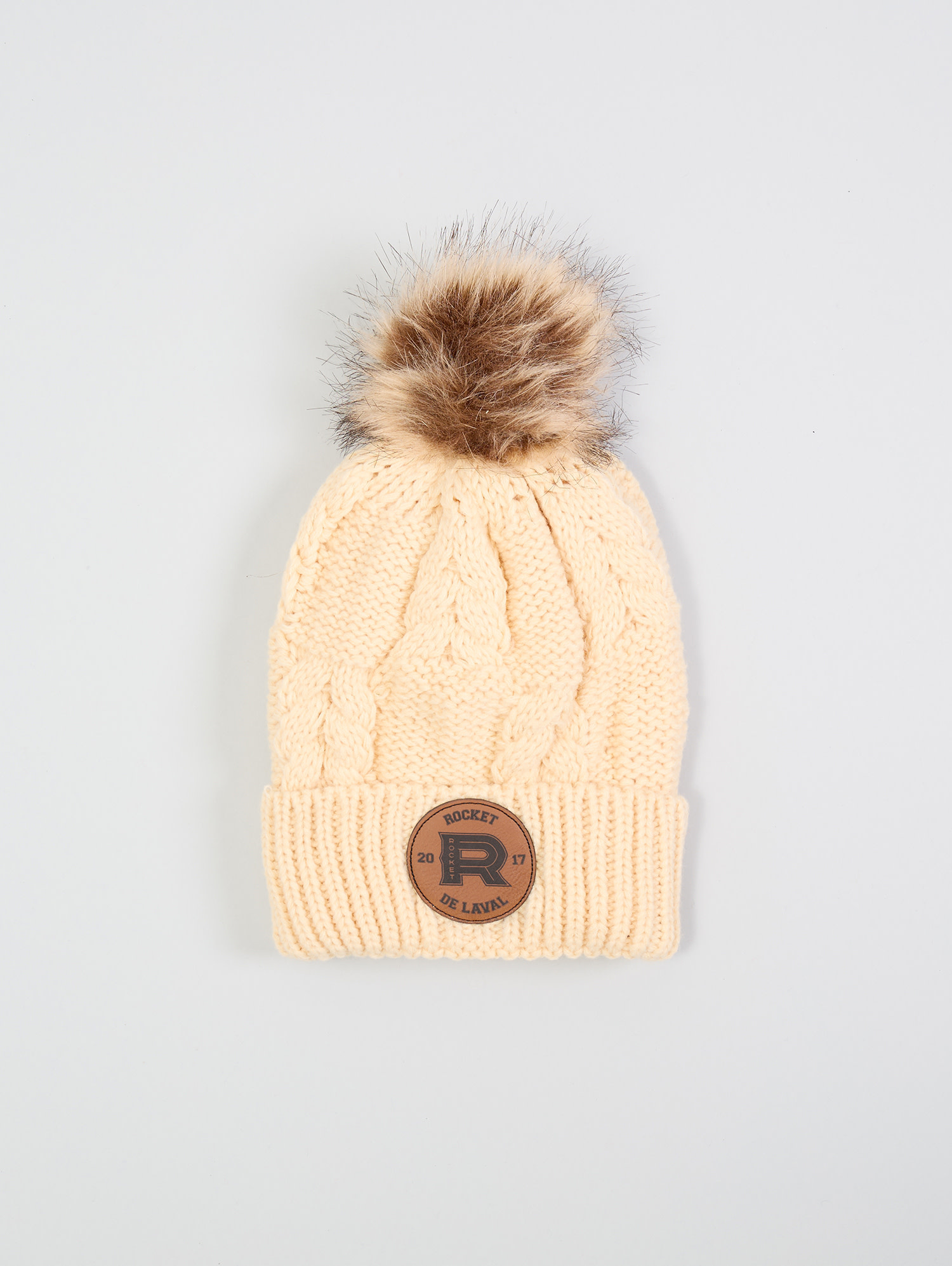 Confectionnée en tricot torsadé doux et chaud, cette tuque offre une isolation idéale pour l’hiver. Son pompon en fausse fourrure ajoute une touche chic, tandis que la pastille Heritage du Rocket de Laval sur le revers lui confère un style authentique et intemporel. Sa teinte beige aux nuances blush s’agence facilement à toute garde‑robe hivernale.