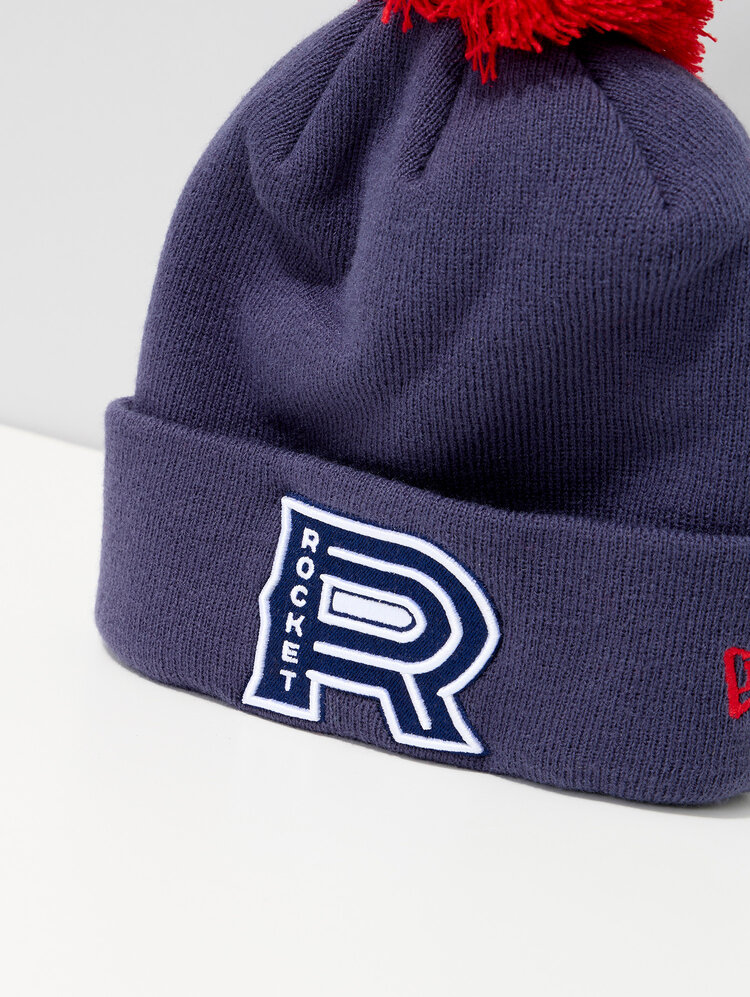 Affichez fièrement vos couleurs avec la tuque classique bleu marine et rouge à pompon du Rocket de Laval. Dotée d’un pompon rouge éclatant et d’un tricot bleu marine, cette tuque allie style hivernal intemporel et fierté d’équipe. Le revers plié met en valeur le logo brodé en « R » des Rockets de Laval, bien en évidence à l’avant. Que vous soyez en route vers la Place Bell ou simplement en promenade par temps froid, cette tuque vous garde au chaud tout en affirmant votre passion pour l’équipe.