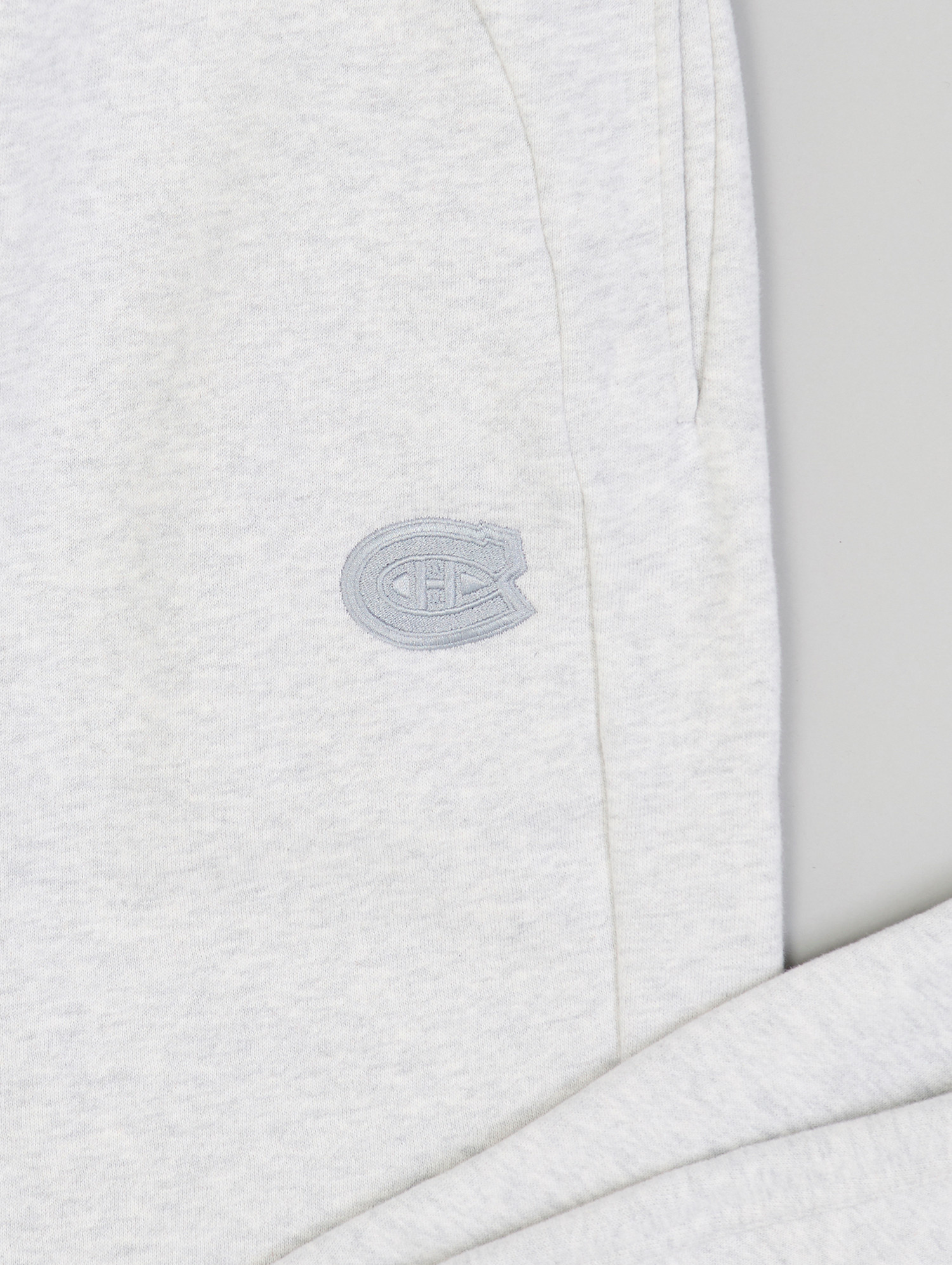Ce jogging arbore une belle teinte gris chiné, accompagnée d’un logo brodé ton sur ton des Canadiens sur la cuisse, ajoutant une touche subtile mais élégante de fierté montréalaise. Sa taille élastique avec cordon ajustable permet un ajustement personnalisé et confortable, tandis que ses chevilles côtelées assurent une silhouette bien définie. Pratique et fonctionnel, il est également doté de poches latérales pour plus de commodité.
