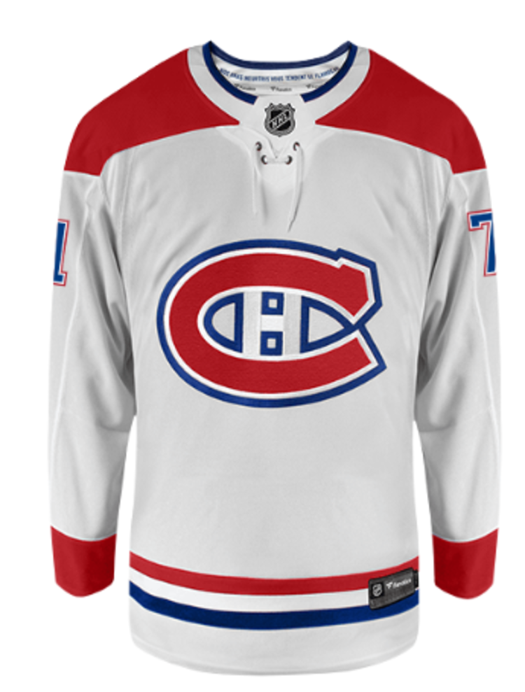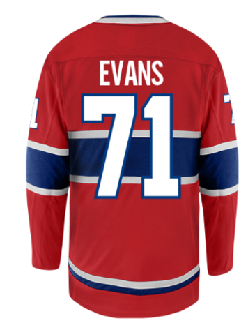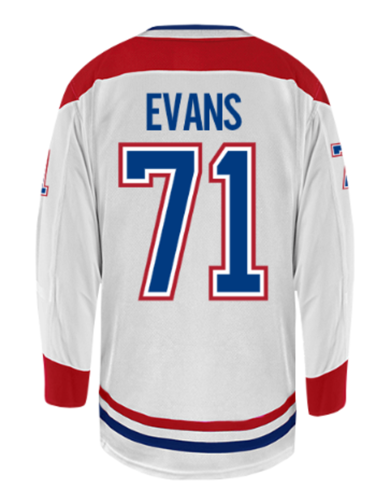 Ce chandail est le chandail "Breakaway" des Canadiens de Montréal à l'étranger personnalisé avec le nom Evans et le #71