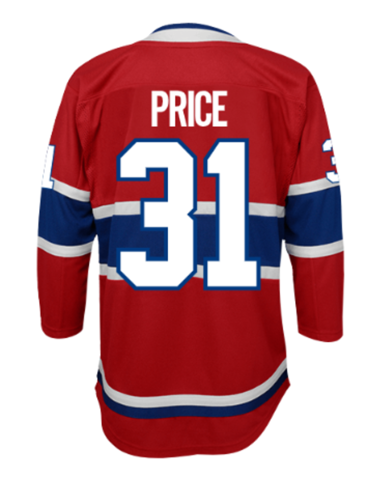 Ce chandail pour enfant 7 à 14 ans est le chandail officiel des Canadiens de Montréal à Domicile avec le nom Price #31 collé sur le chandail.