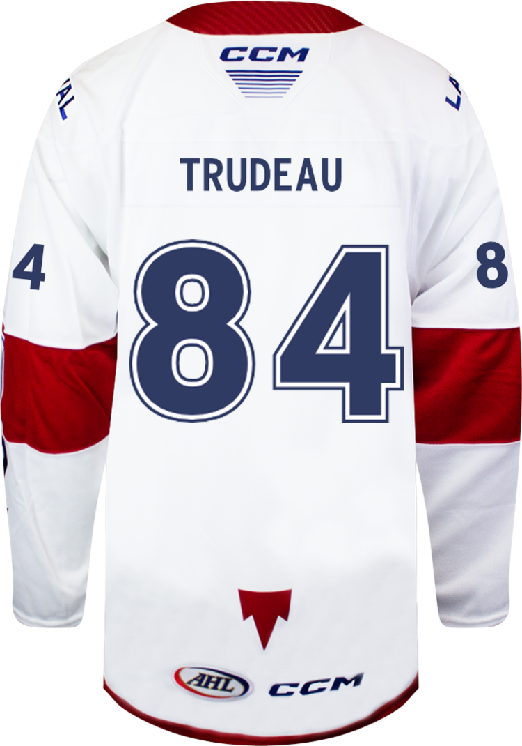 Affichez votre soutien au Rocket de Laval avec ce chandail Quicklite blanc sous licence officielle, arborant le nom et le numéro du défenseur William Trudeau (#84) pro collé à l’arrière. Conçu pour offrir confort et performance, ce chandail est fabriqué avec la technologie Quicklite, garantissant une sensation de légèreté et de respirabilité, idéale pour les jours de match ou un usage quotidien.