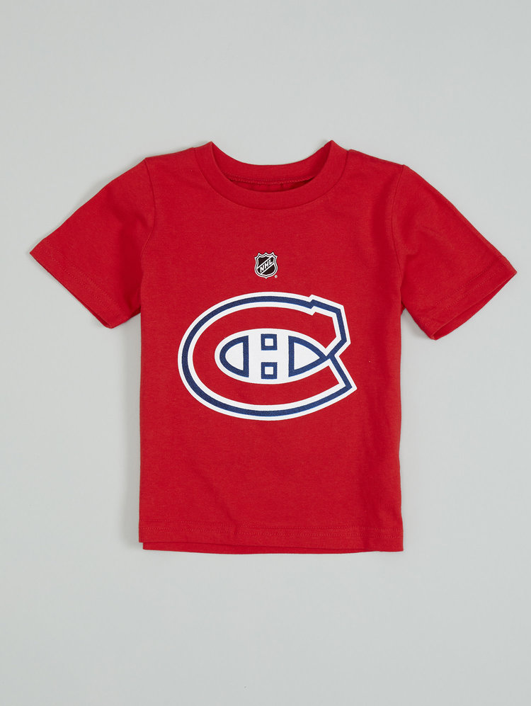 Ceci est le t-shirt de joueur pour bébé officiel des Canadiens de Montréal avec le nom de Nick Suzuki #14 imprimé sur le dos du t-shirt.