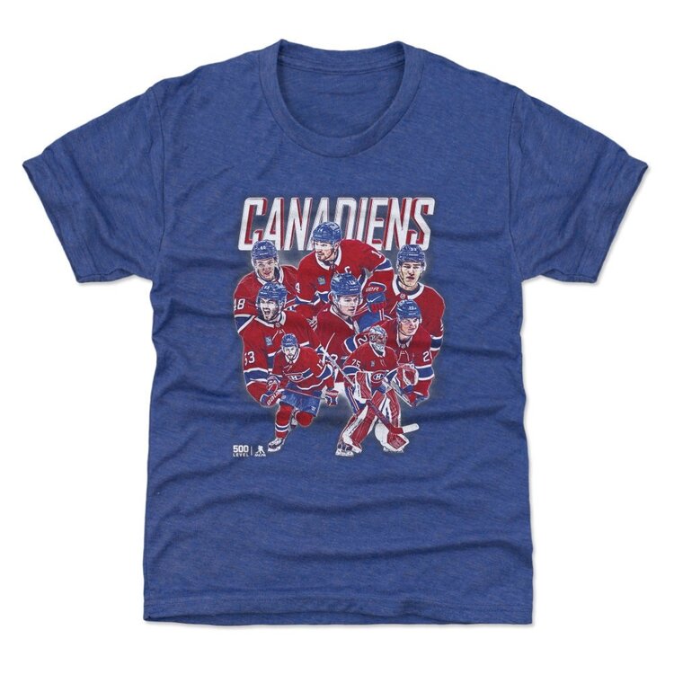 Faites vivre la passion du Tricolore aux plus jeunes avec le t‑shirt enfant des Canadiens de Montréal – The Core 8. Ce t‑shirt bleu chiné à manches courtes présente un visuel dynamique réunissant huit joueurs clés des Canadiens, illustrés en action sous le lettrage emblématique « Canadiens ». Conçu pour le confort des enfants, il offre une coupe idéale pour l’école, le jeu ou les soirées hockey en famille. Parfait pour encourager la relève des partisans, ce t‑shirt Core 8 pour enfants allie style, énergie et fierté des Canadiens de Montréal au quotidien.
