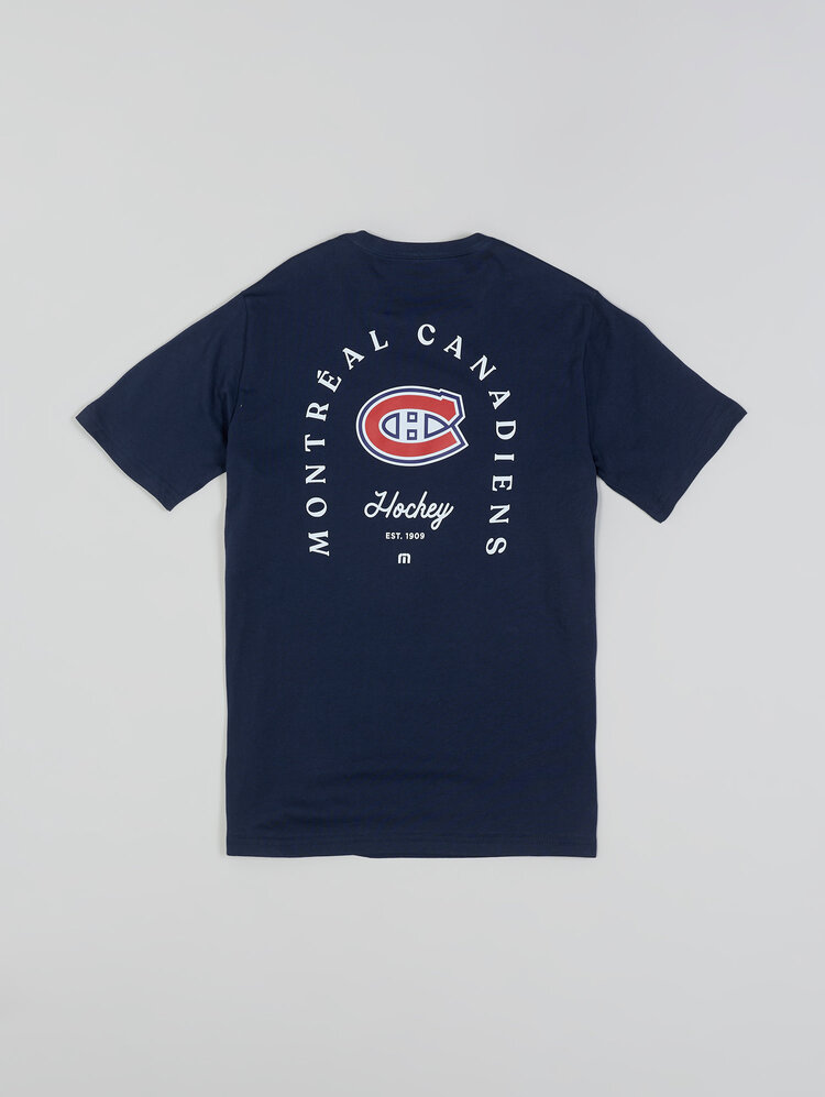 Affichez fièrement l’héritage des Canadiens de Montréal avec le T-shirt à emblème Héritage, un essentiel intemporel pour les vrais partisans. Son grand visuel au dos présente le célèbre logo des Canadiens entouré de l’inscription « Montreal Canadiens Hockey» et de la mention « Est. 1909 », rendant hommage à l’une des franchises les plus mythiques du hockey. Le petit logo à l’avant ajoute une touche classique et épurée.