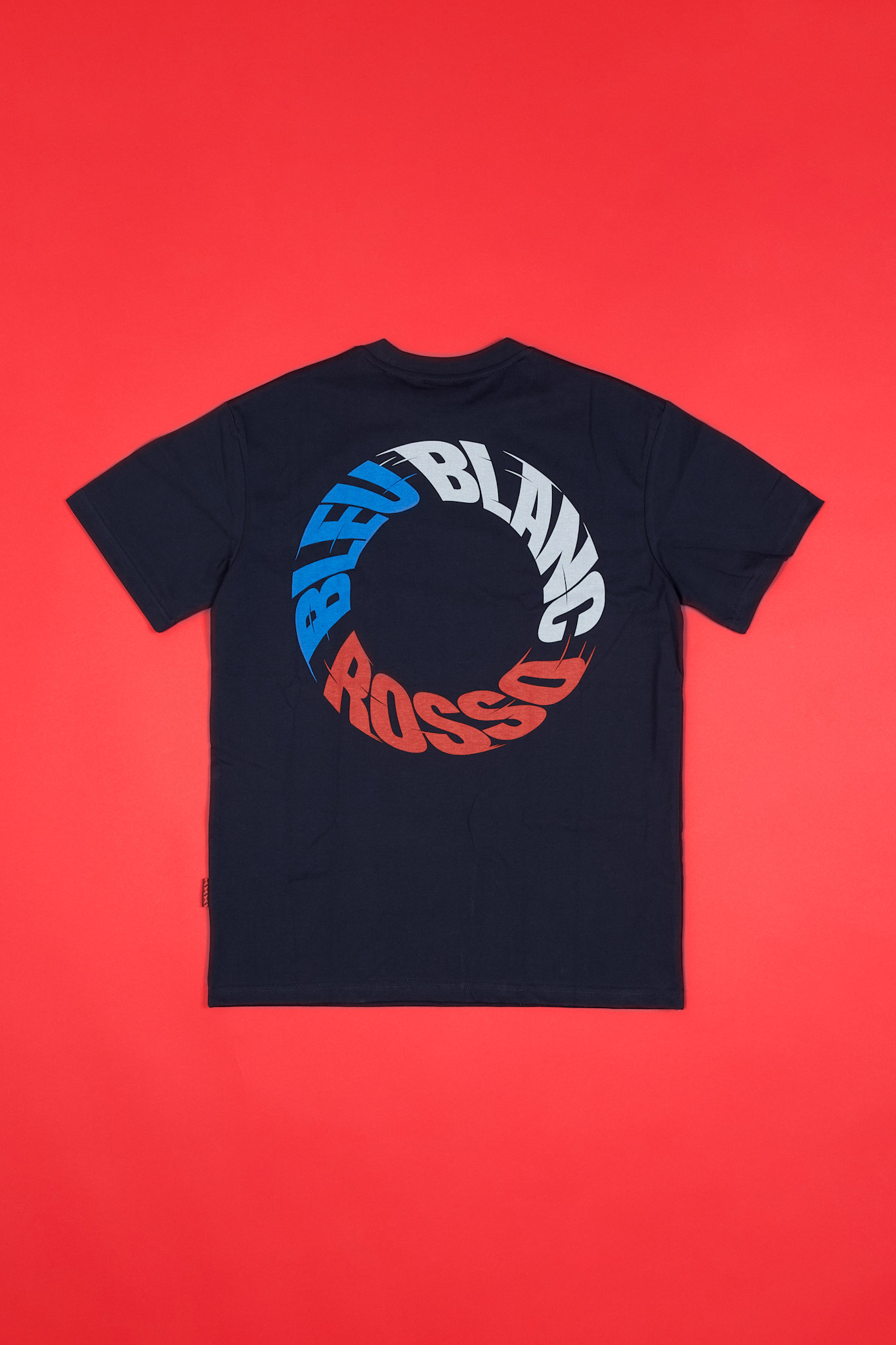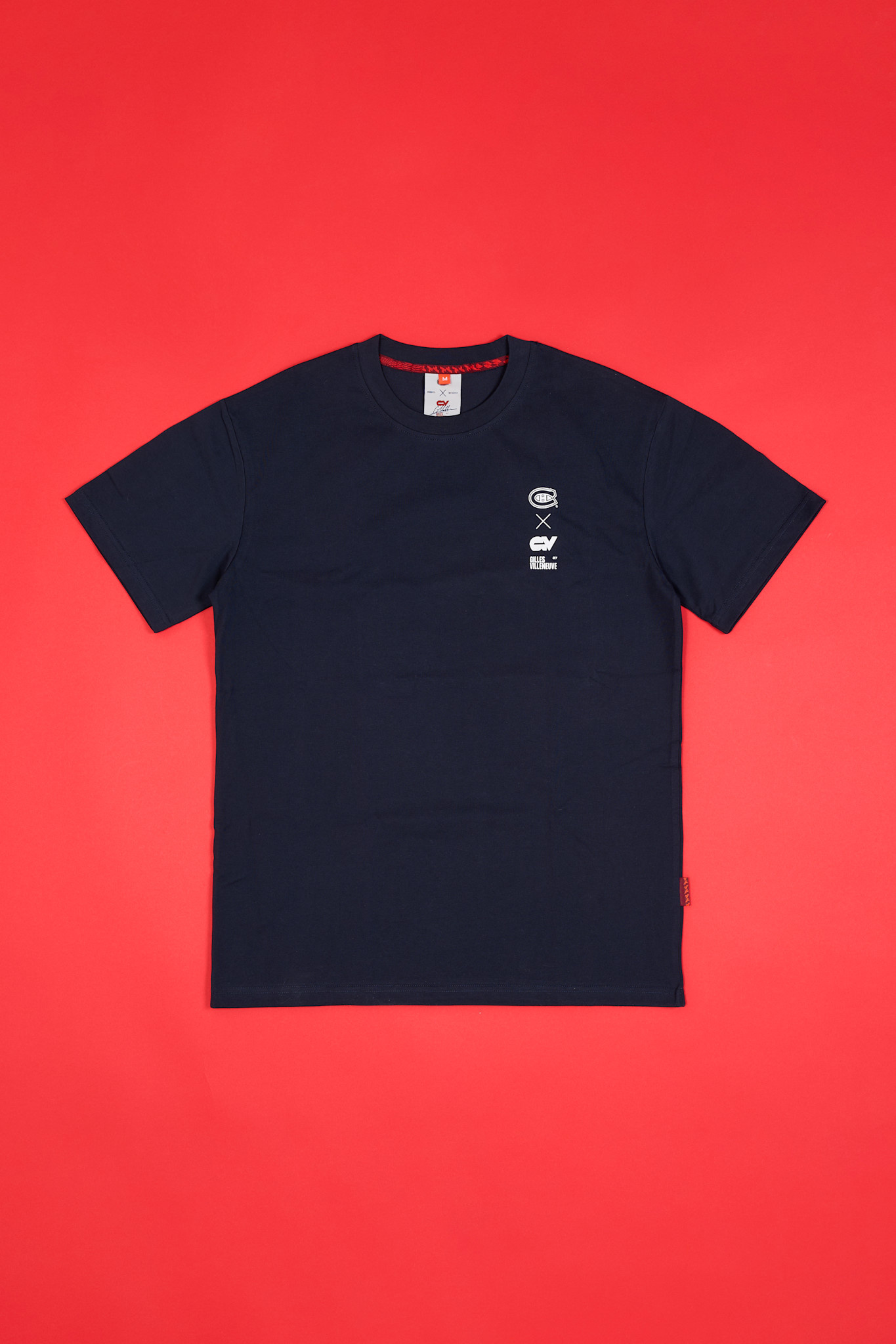 Fabriqué à partir d’un mélange haut de gamme de coton et de polyester, ce t-shirt bleu marine offre un confort supérieur et une durabilité exceptionnelle. À l’avant, on retrouve un logo épuré CH x GV, tandis qu’à l’arrière, un audacieux motif circulaire « Bleu Blanc Rosso » en dégradé de bleu, blanc et rouge rend hommage à la passion montréalaise.