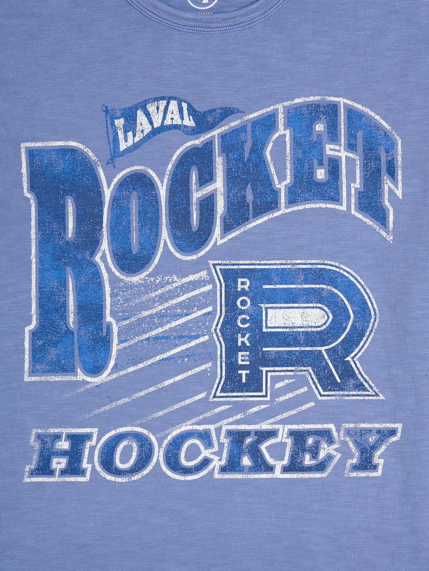 Affichez votre fierté du Rocket avec un style intemporel grâce au t‑shirt à logo vintage du Rocket de Laval. Confectionné dans un tissu bleu chiné doux, ce t‑shirt à manches courtes présente un visuel rétro volontairement vieilli mettant en valeur le lettrage Laval Rocket Hockey et le logo emblématique en « R ».