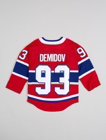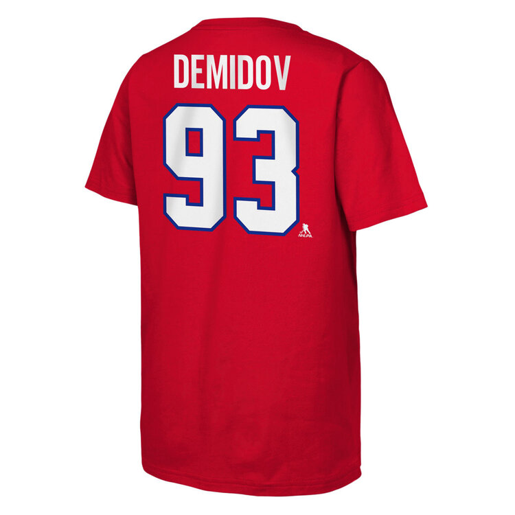 Ceci est le t-shirt de joueur pour junior officiel des Canadiens de Montréal avec le nom de Ivan Demidov et le #93 imprimé sur le dos du t-shirt.