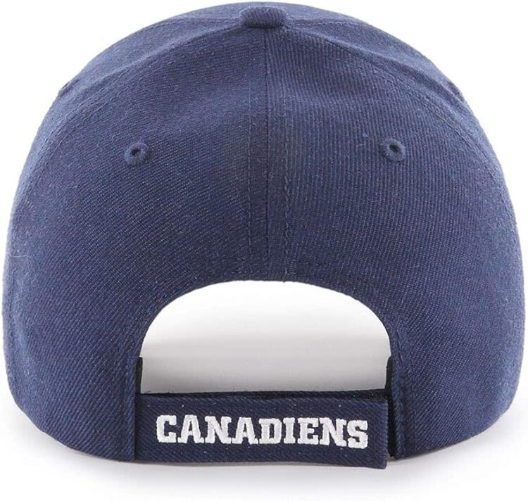 Show your Habs pride with timeless style in the Montreal Canadiens Navy Adjustable MVP Cap by '47 Brand. Crafted from soft, structured fabric, this classic cap features the iconic Canadiens logo embroidered on the front in full colour. The curved visor and adjustable hook-and-loop back strap ensure a comfortable, custom fit for everyday wear. Whether you're at the Bell Centre or out in the city, this cap is the perfect finishing touch to any fan look.