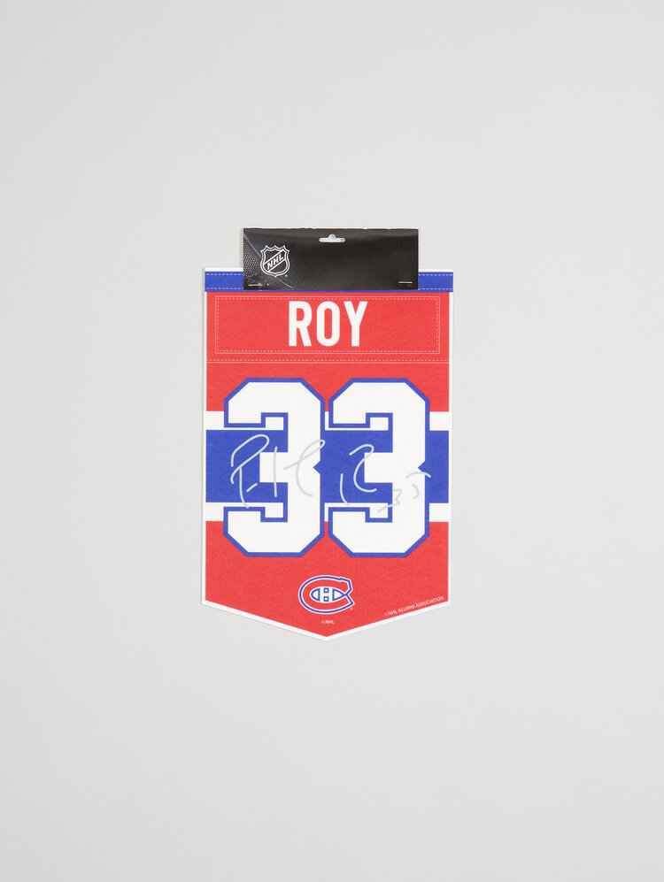 Celebrate the legacy of one of the greatest Canadiens players with the Patrick Roy #33 Replica Signature Mini-Banner. This premium mini-banner is a tribute to "Saint Patrick" and his incredible career with the Montreal Canadiens. Featuring Patrick Roy's iconic #33 and a replica of his signature, this collectible piece is perfect for any fan looking to honor the hockey legend.