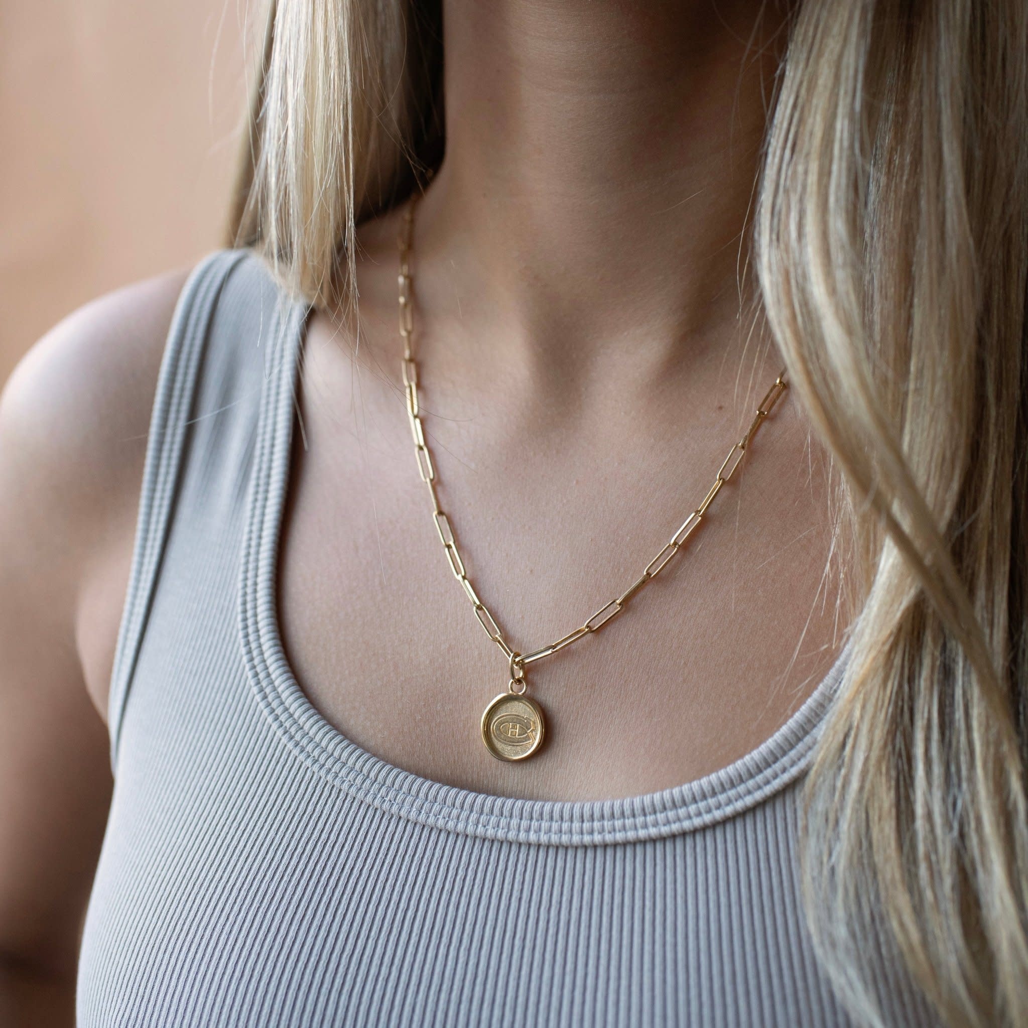 Show your team pride with this wax seal gold Montréal Canadiens logo pendant necklace. We love that you can remove the pendant and clasp it along the entire length of the chain in order to wear it as short or as long as you wish. It's the perfect piece to elevate your style from game day to every day.