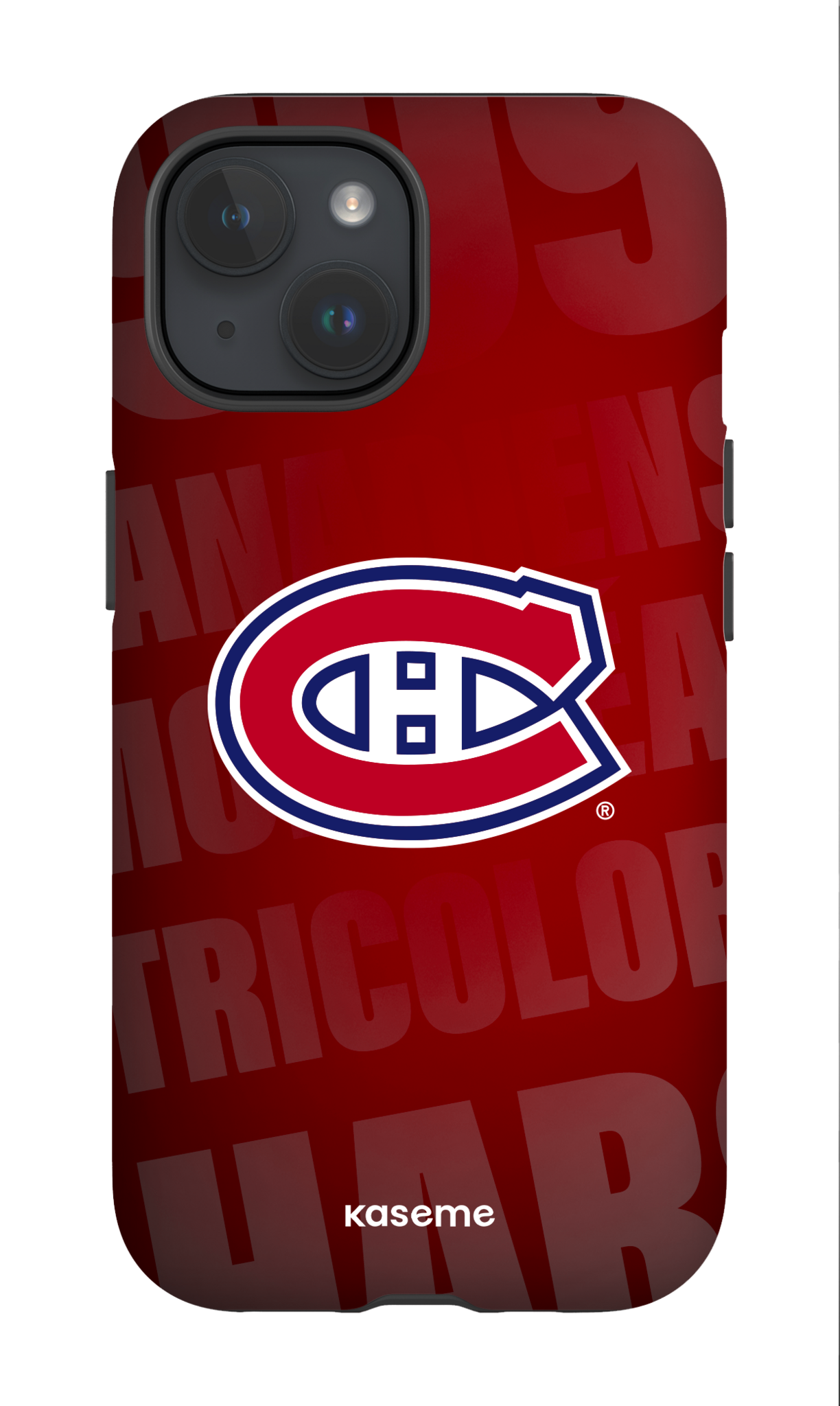 Show your pride for the Bleu‑Blanc‑Rouge with the KaseMe x Canadiens Tricolore Phone Case, a bold and timeless design inspired by the heart of Montreal hockey. Featuring the iconic Montreal Canadiens “C‑H” logo prominently displayed on a deep red background, this case is accented with subtle, layered “Tricolore” typography for a dynamic yet classic look.