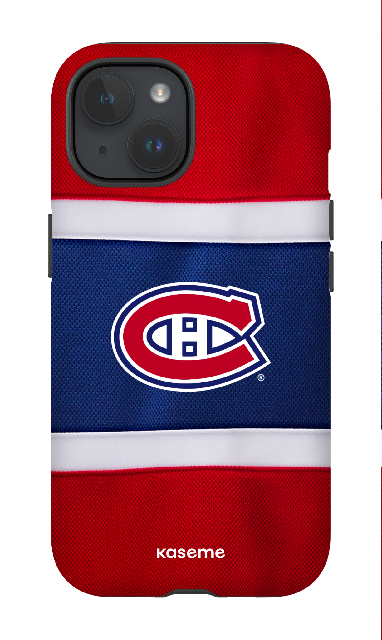 Bring the energy of game day to your everyday carry with the KaseMe x Canadiens Jersey Phone Case. Inspired by the iconic Montreal Canadiens home jersey, this phone case features authentic red, white, and navy striping paired with a textured fabric‑style finish that mirrors the look of an on‑ice sweater.