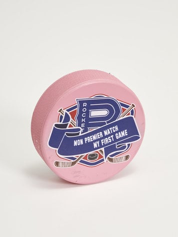 Enter the details of their first hockey game at Place Bell with this blue Laval Rocket "My Frist Game Hockey Puck"!