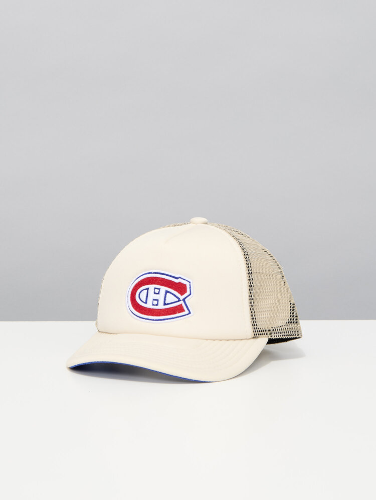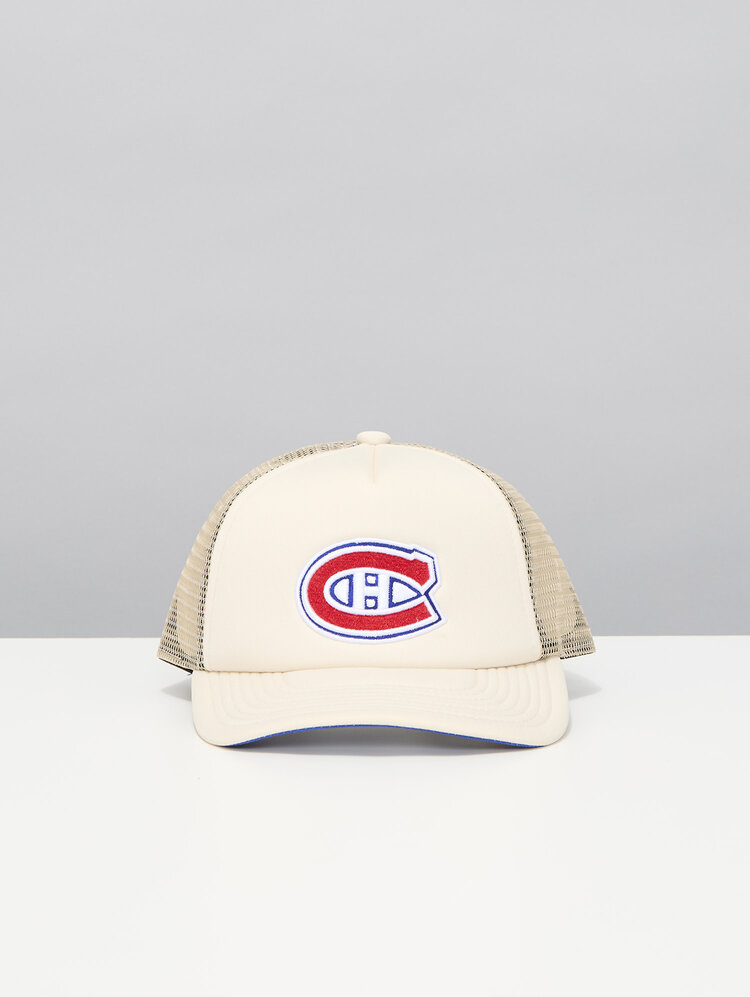 Crafted with a breathable mesh back, this trucker-style cap keeps kids cool and comfortable whether they’re at the game or playing outside. The front features a bold, embroidered oversized Montréal Canadiens logo, making their team allegiance clear for all to see. The beige color adds a neutral, stylish touch that pairs easily with any outfit.