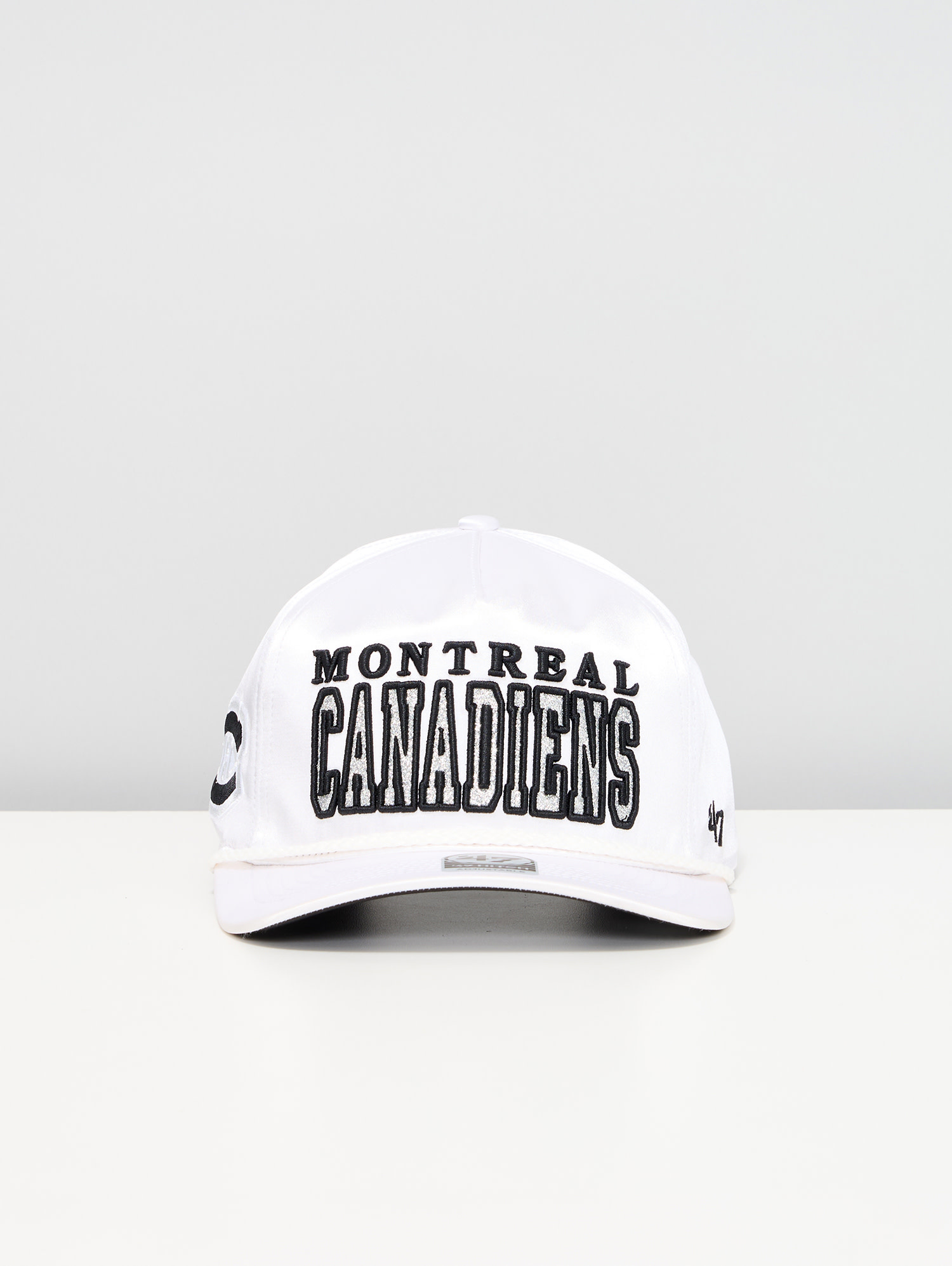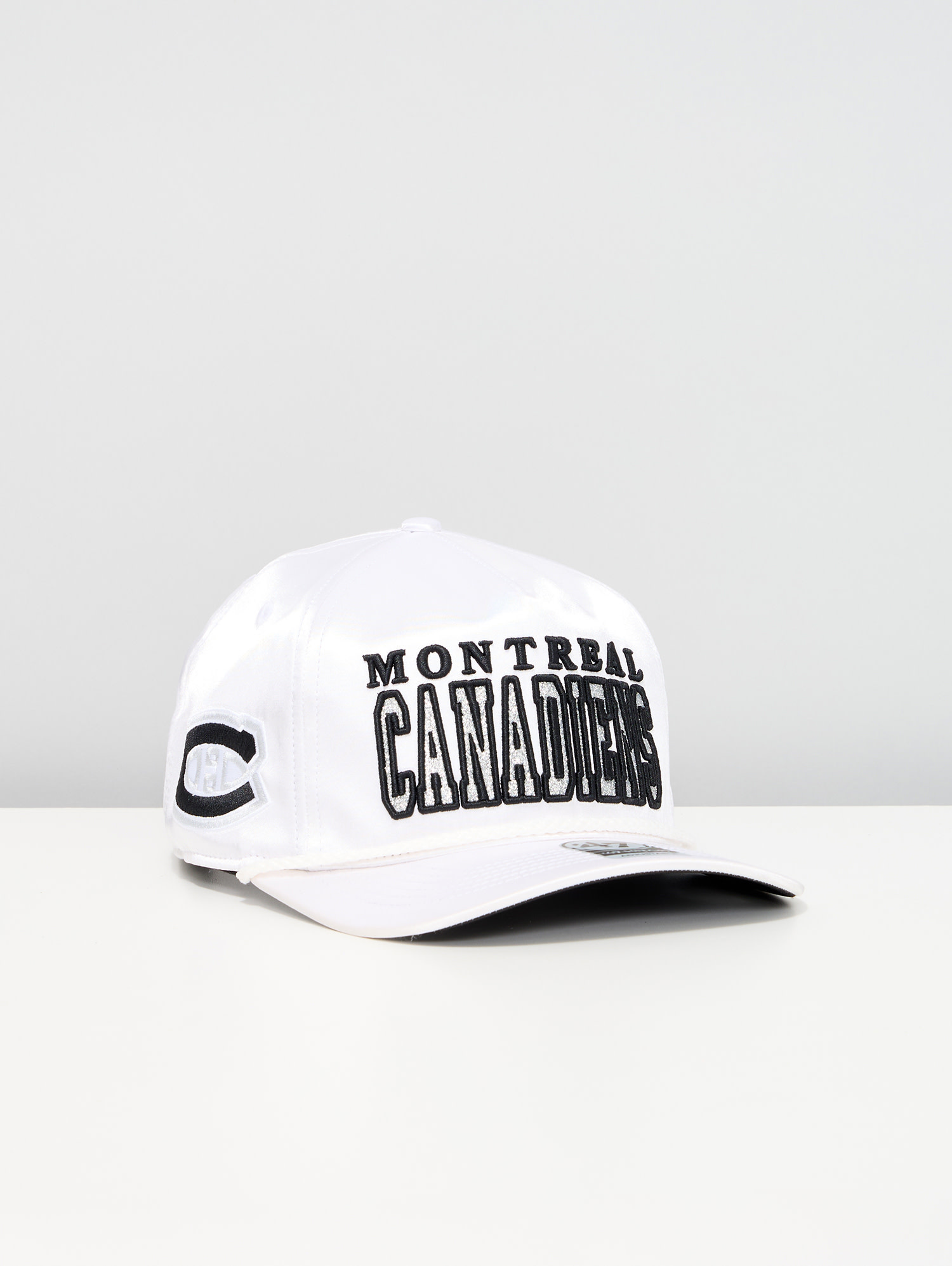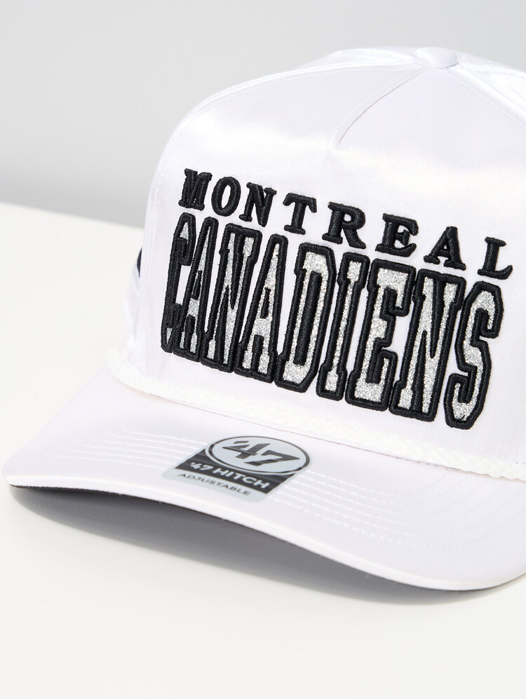 Make a bold statement with the Montreal Canadiens Outspoken Satin Women's Snapback Cap. Crafted from thick satin fabric, this cap offers a sleek, eye-catching finish with a structured shape for a polished look. The adjustable plastic snapback closure ensures a secure and customizable fit, while the braided rope detail across the visor adds a touch of retro charm. A glitter appliqué with embroidery on the front highlights the Canadiens name with flair, complemented by a flat embroidered team logo on the side. Perfect for fans who love to stand out in style.