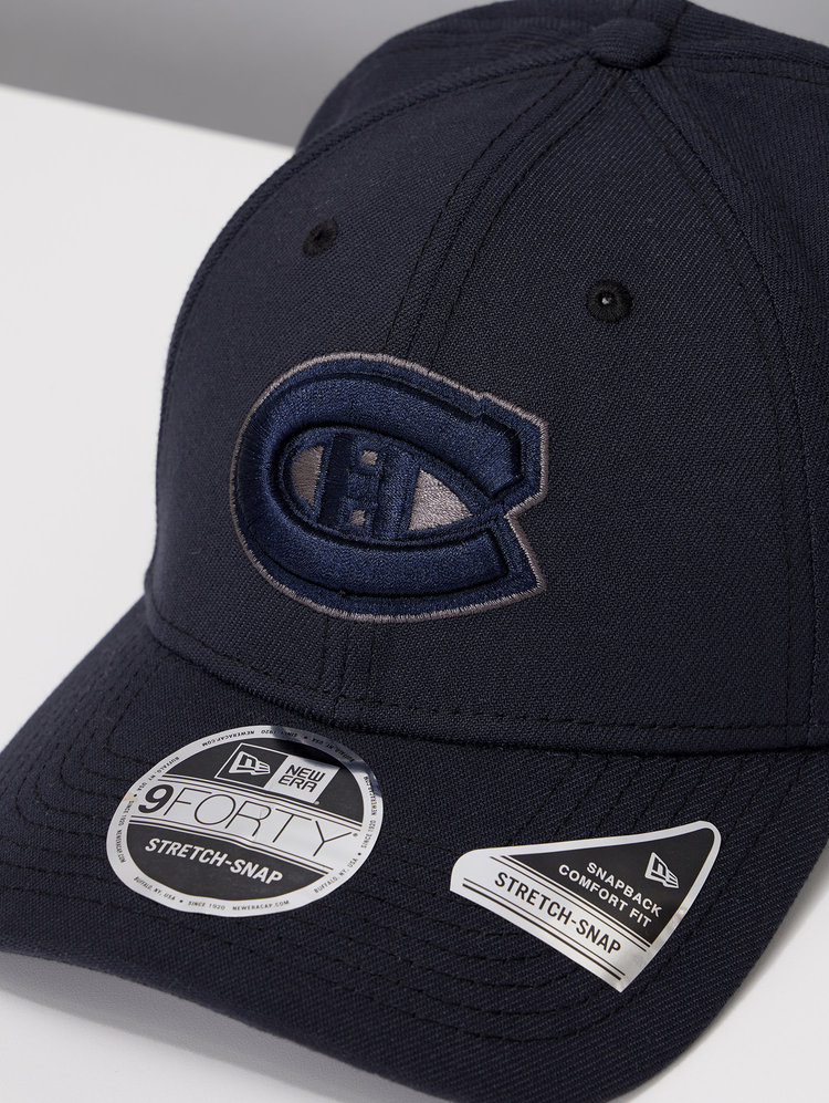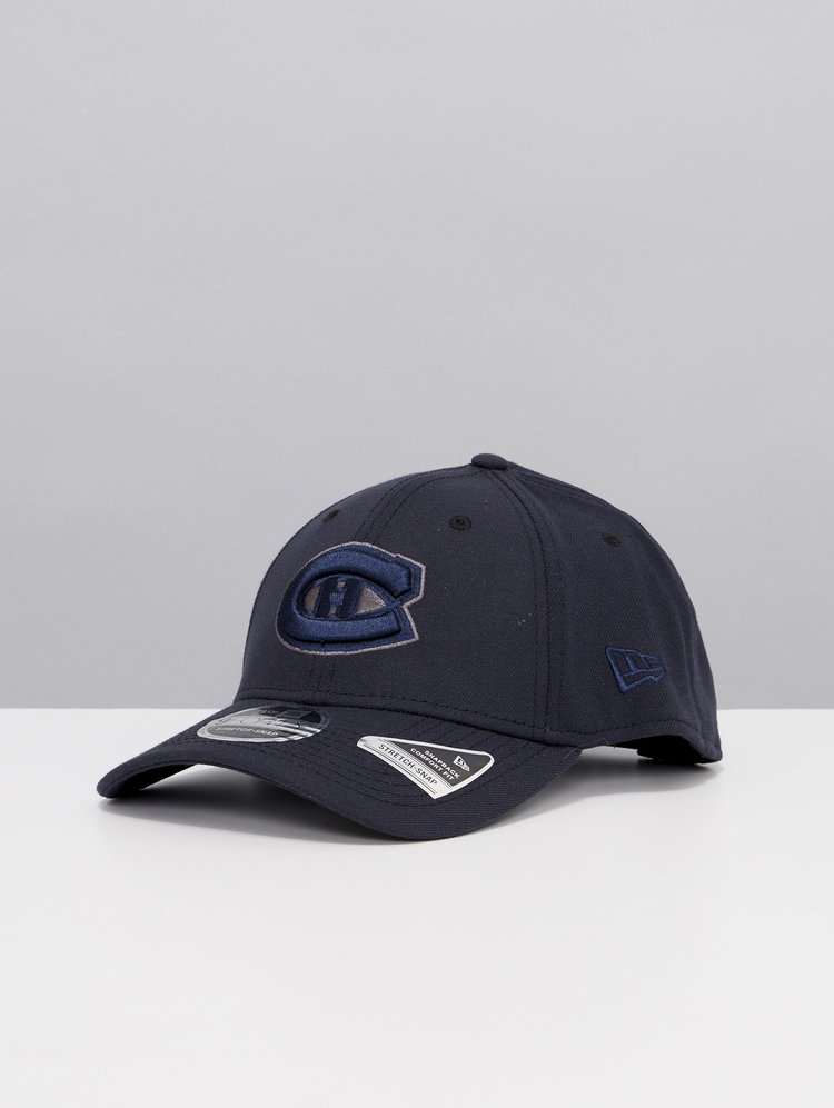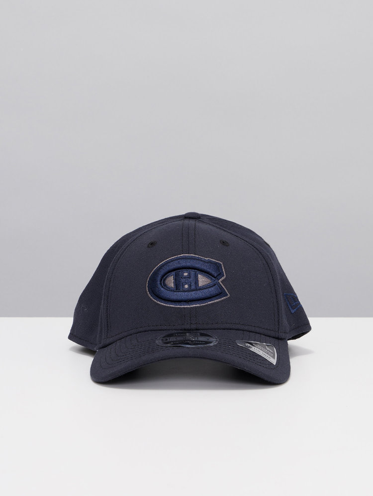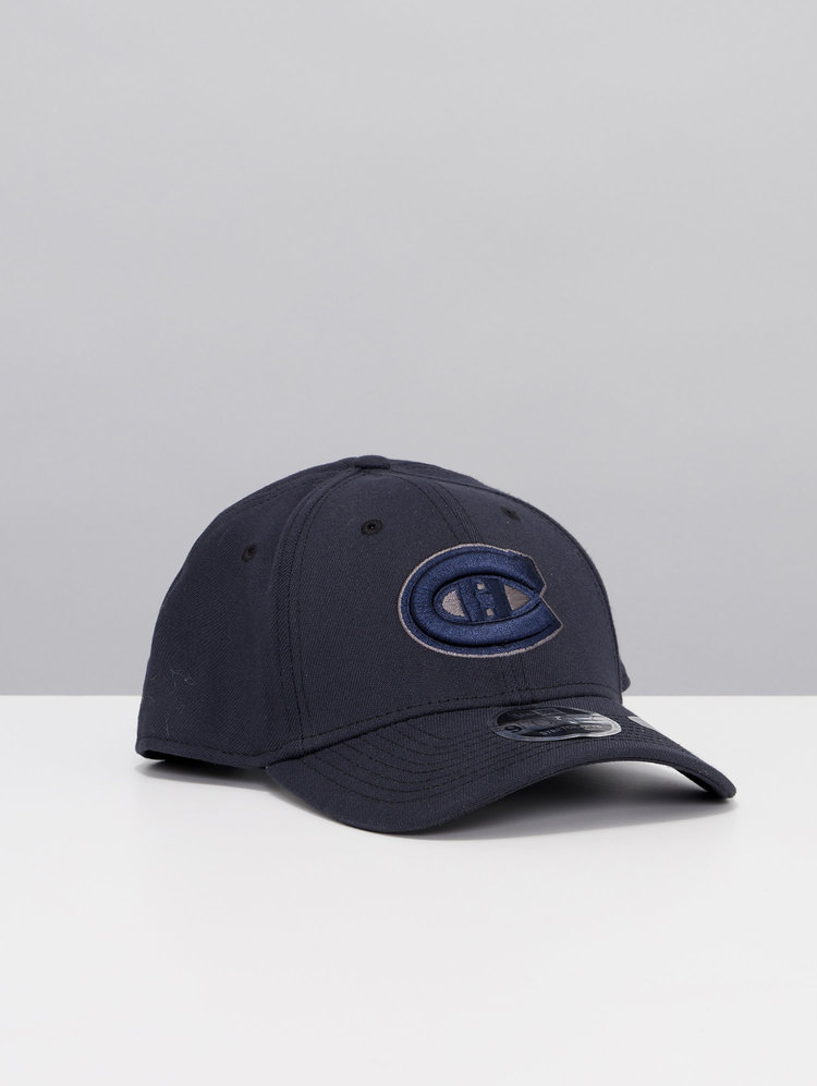 The Montreal Canadiens Navy 9FORTY Adjustable Cap features an embroidered tonal Habs logo at the front panels with the New Era logo embroidered to the side and snapback adjustment at the rear.